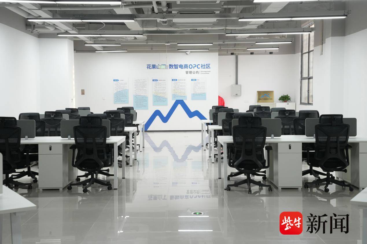年轻人的快速成长,离不开花果山下·数智电商OPC社区的硬件支撑与生态构建。该社区于2026年3月正式揭牌,坐落于一带一路数字贸易产业园内。目前一期已配置100间数智电商直播间及共享工位,并配套1500平方米的电商选品中心。