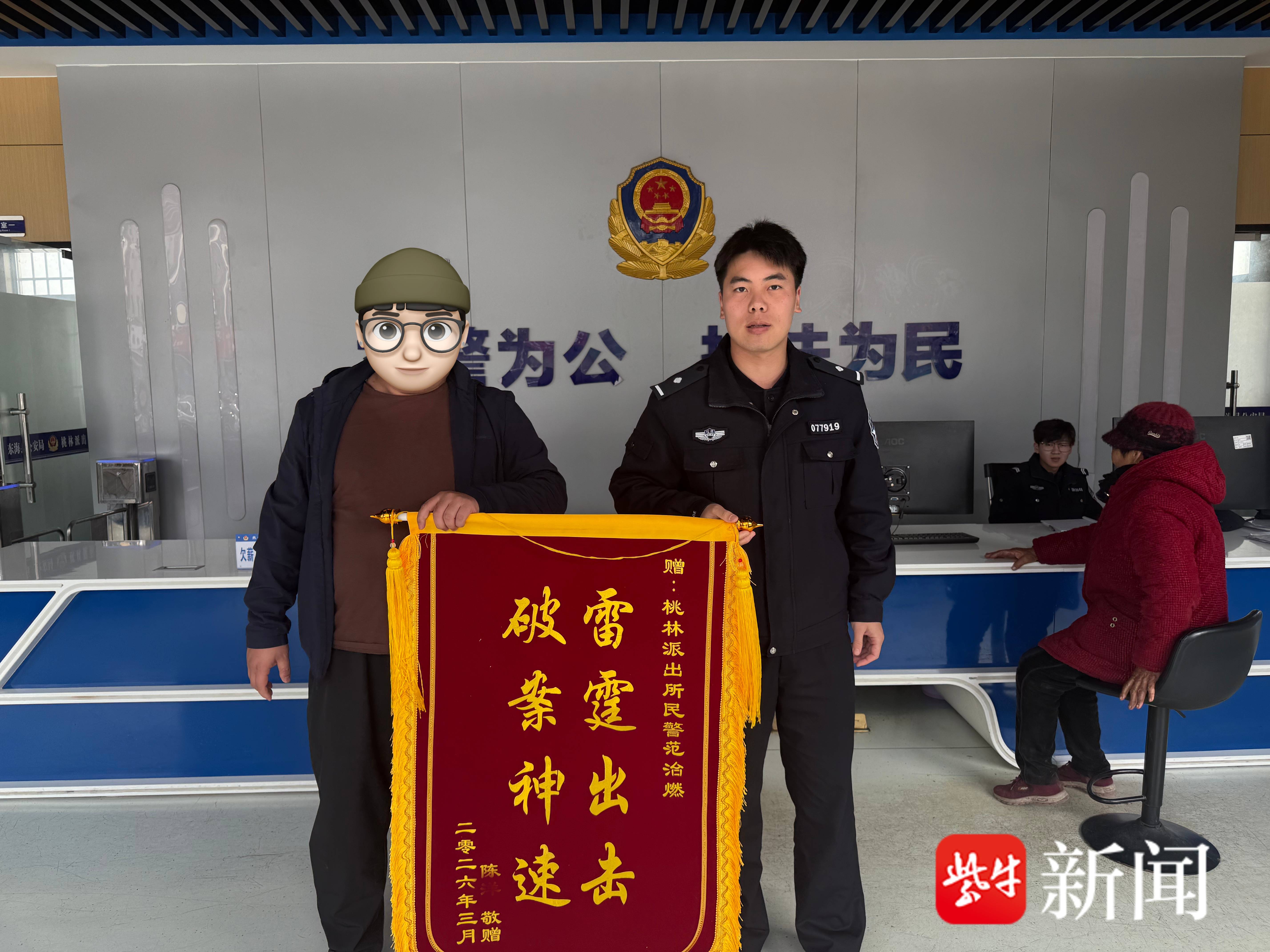 接警后,民警范治燃第一时间赶赴现场展开侦查。民警仔细勘察现场,走访周边群众,凭借对辖区地形地貌、人员情况的熟稔,以及扎实的研判能力,民警仅用数小时便锁定了违法行为人的身份和行踪。当天,他就成功将违法行为人抓获,并追回了陈先生被盗的家禽。从接警到破案追赃,整个过程高效利落,让陈先生既惊讶又感动。“这点小事没想到民警这么上心,效率太高了!”陈先生感慨地说。为表达谢意,他专门制作了一面锦旗,送到桃林派出所。