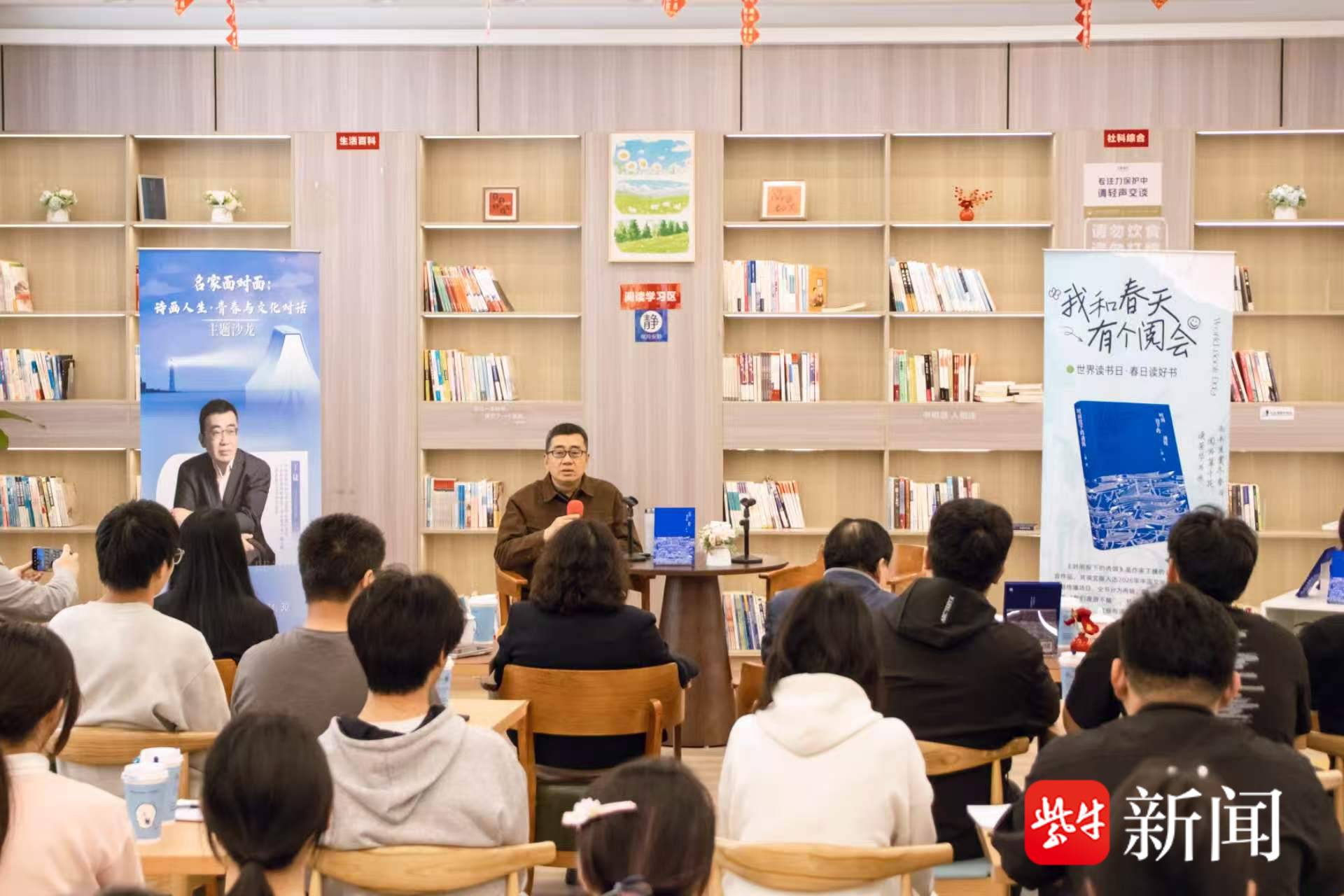 扬子晚报网4月17日讯(通讯员 俞谷英 记者 姜天圣)4月17日下午,在世界读书日与2026年“全民阅读活动周”即将来临之际,学院在校园书店举办“名家面对面:诗画人生·青春与文化对话”主题沙龙活动。本次活动特邀江苏省全民阅读推广形象大使,著名作家、诗人、画家丁捷老师作为主讲嘉宾,与现场师生展开深度对话,共同探讨文学、艺术与青春成长,拉开了学院2026年读书节系列活动的序幕。来自省内文学艺术界的多位作家共同出席了本次活动。