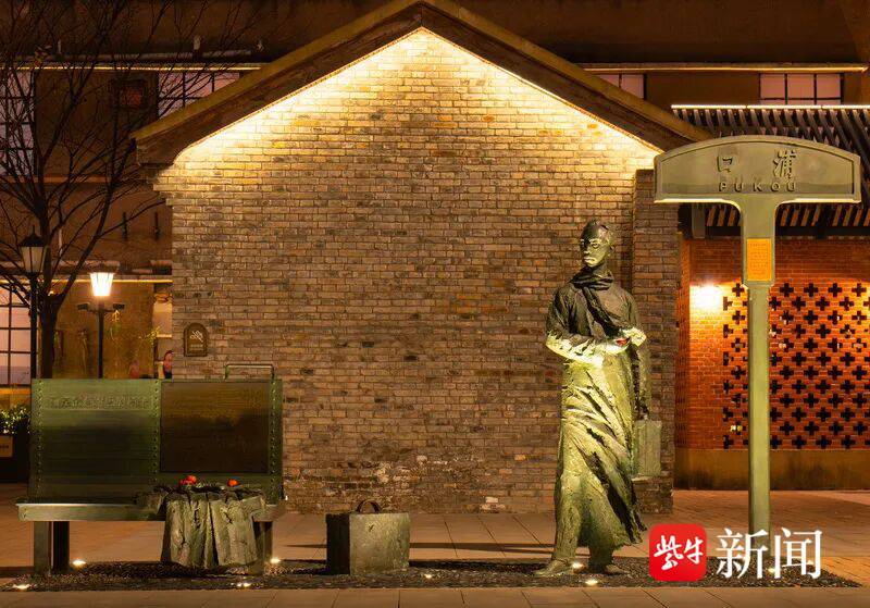 如今,在浦口火车站街区立有朱自清铜像,朱自清提着行李凝望远方,身旁空椅散落几枚朱红橘子,椅子上镌印着一行字——南京最有温度的椅子。沿路往前走,就是浦口火车站候车室,候车室后,便是锈迹斑斑的铁轨、孤寂空旷的站台以及停在时光深处的节节列车。
