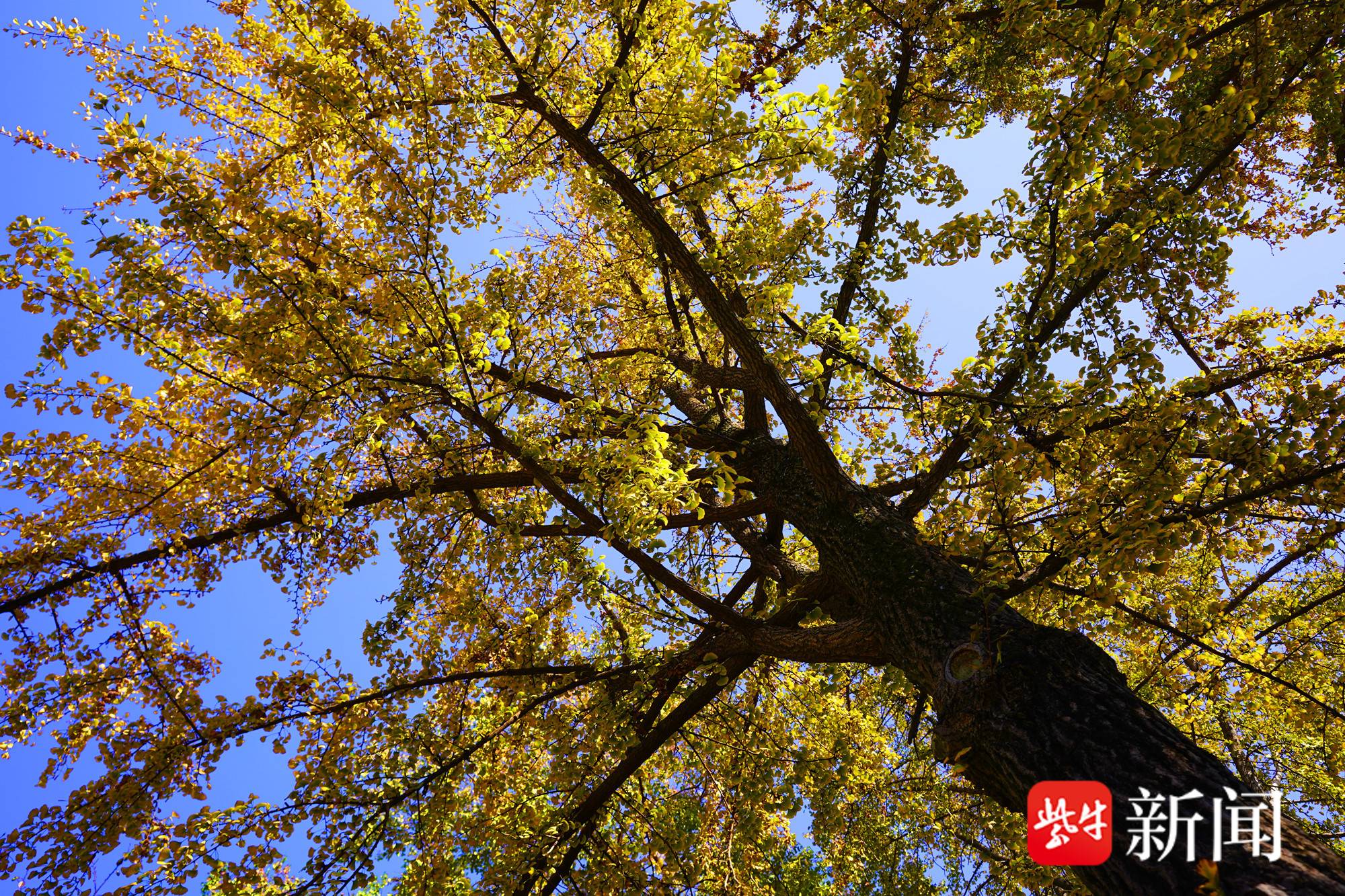 视频|冬季来临啦!南京鸡鸣寺大道旁樱花绽放,与金黄银杏叶争艳