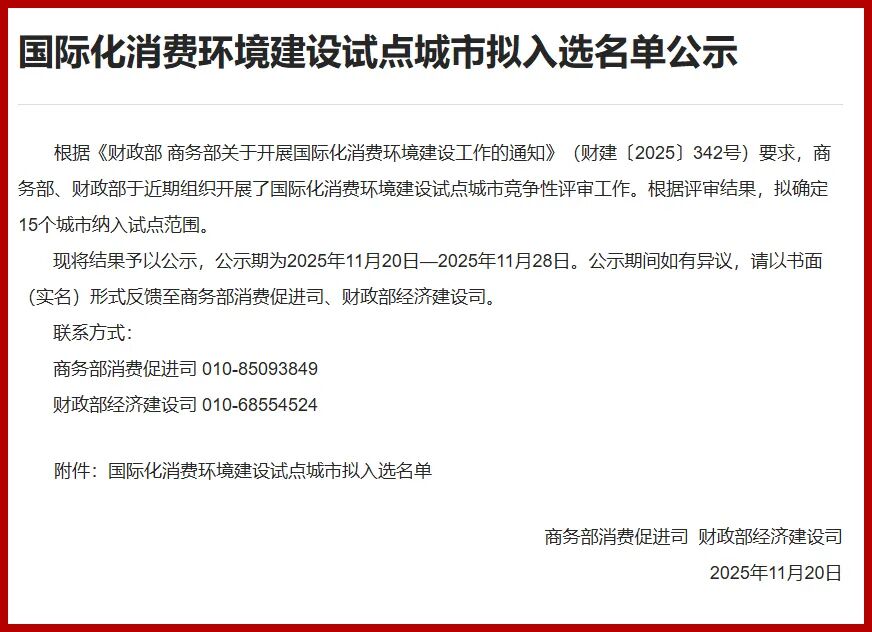 在商务部公布的国际化消费环境建设试点城市拟入选名单中,共有15个城市,南京是江苏省唯一入围的城市。