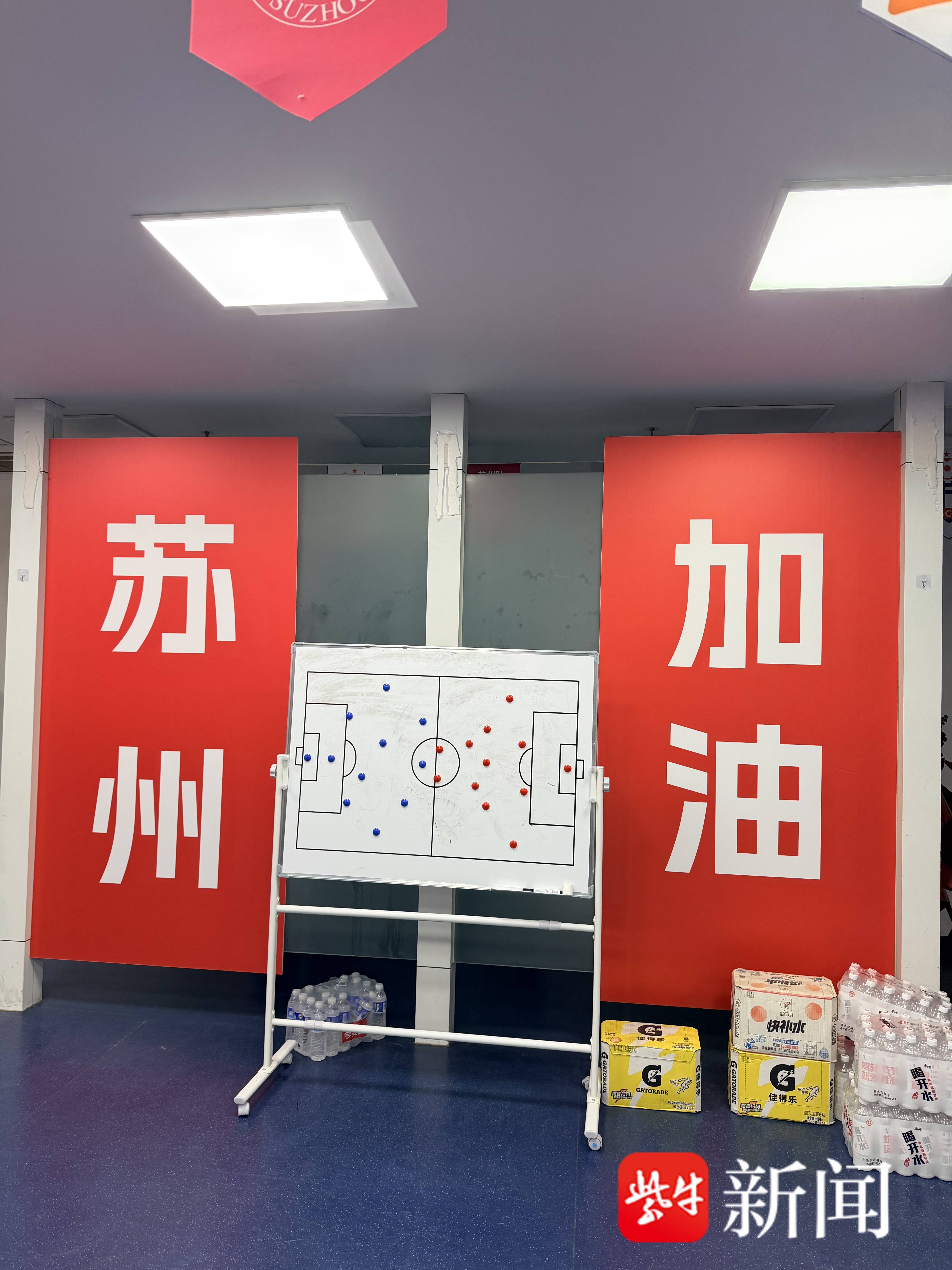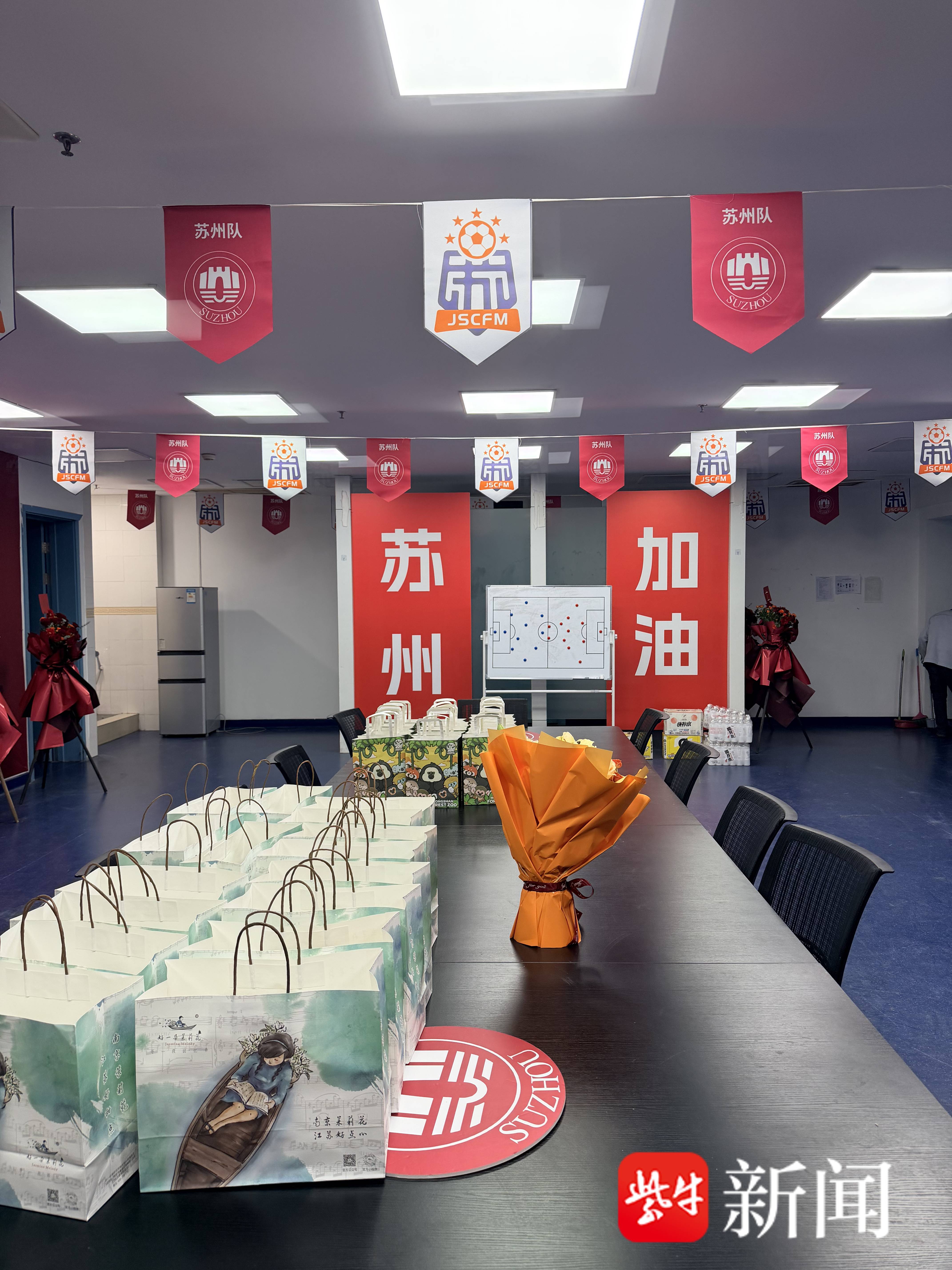 南京vs苏州赛前,组委会在苏州队更衣室里准备了丰富多彩的伴手礼:红山动物园的文创和好一朵茉莉花的零食!以此打造“文明是底色,礼轻情意重”的浓浓氛围。