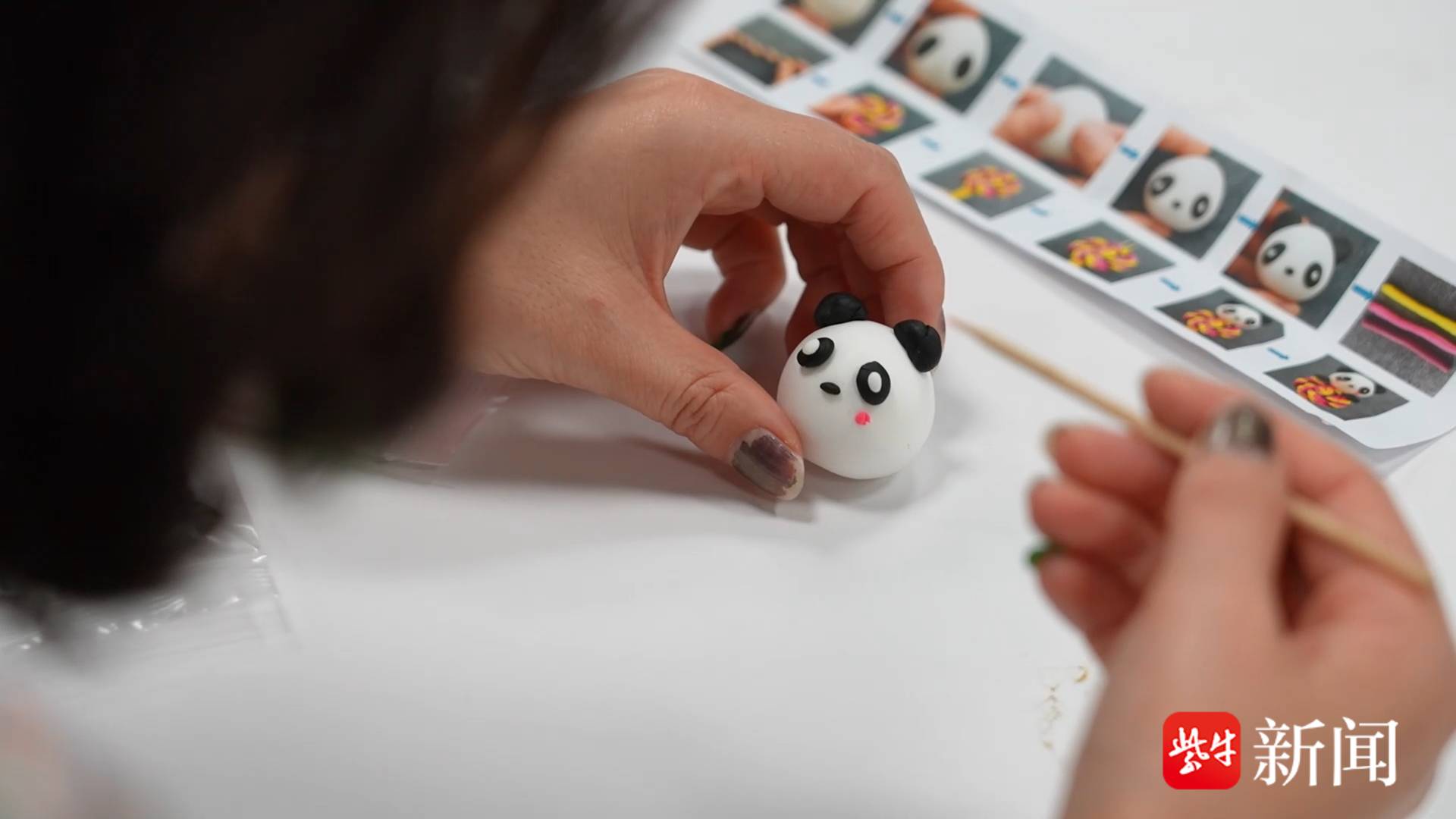 动手实践环节中,学员们学习制作入门款卡通熊猫面塑。“先像搓元宵一样搓圆,再轻轻拉出熊猫脸的轮廓。”俞晨边演示边讲解,“用大拇指指腹按出眼窝,捏两枚‘小黑瓜子’作眼睛……”由于室内开着暖气,空气干燥,俞晨多次提醒大家要加快速度,以免面团变干。紧锣密鼓中,学员们学得起劲,原本计划一小时完成的熊猫面塑,仅花了半个多小时就做得有模有样。