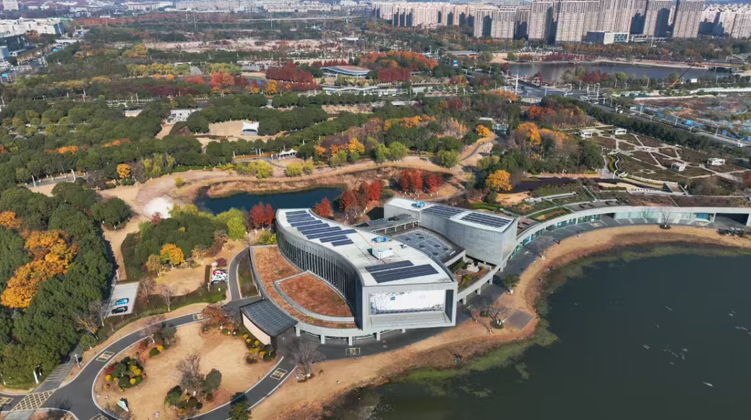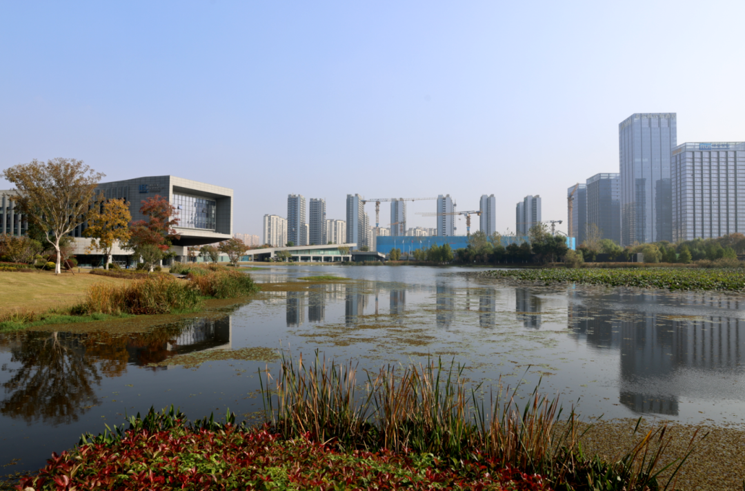 “两水夹明镜,双桥落彩虹”的意境,在这里找到了现代的知音。坐拥绝佳湖景的IEC国际标准促进中心(南京),是这幅动态画卷中的点睛之笔。造型独特的直线条、玻璃幕墙的硬朗光泽,与蒲苇的纤细、湖波的曲线形成了刚与柔的绝妙对话。