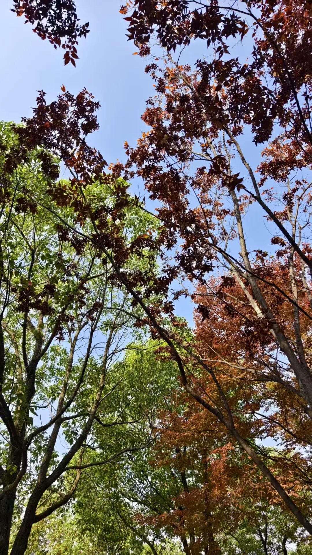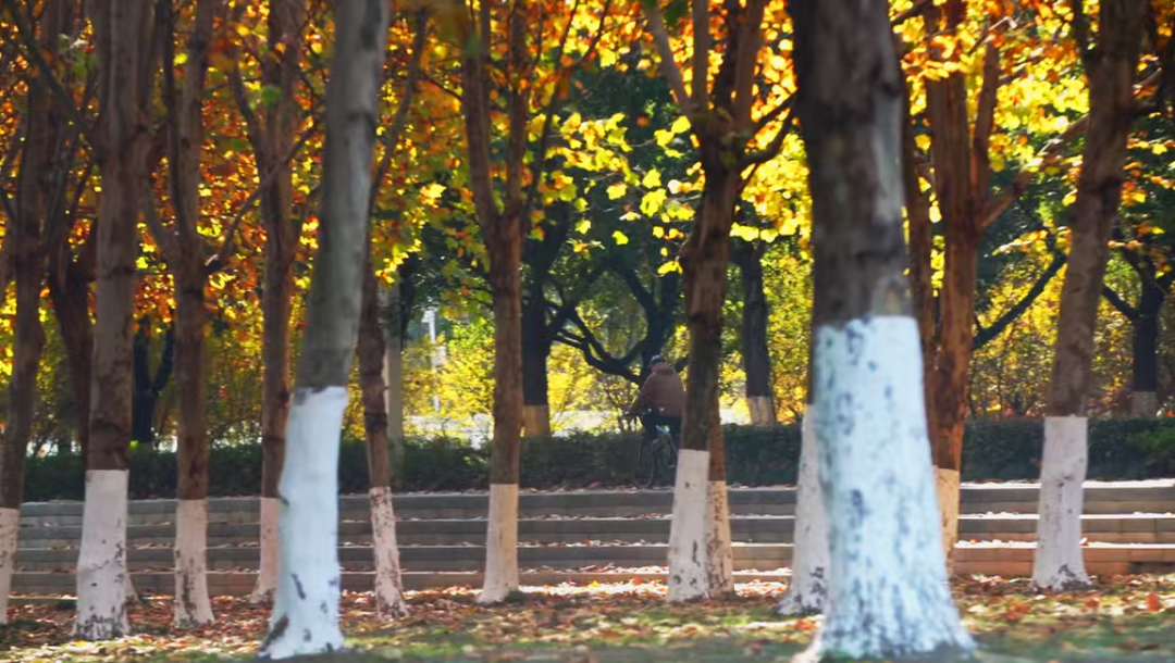 十二月的南京,天气渐凉,公园的主色调也转向了更为丰富的谱系。栾树、香樟、红枫、银杏、乌桕……不同姿态的植物叠翠流金,装点出公园的丰富色彩。