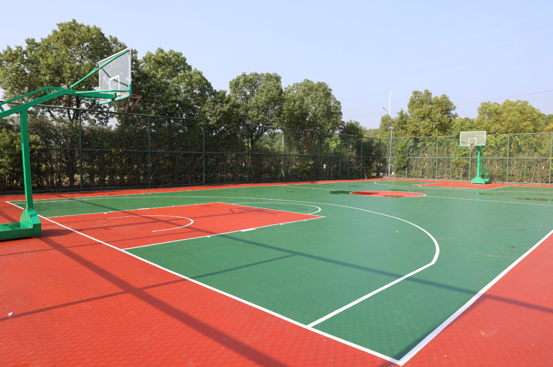 循着淡淡的草木香气,沿绿道而行。曲径通幽处,斜坡上一大片梦幻粉色突然映入眼帘。三期还有篮球场和网球场,这里是下班后释放压力的最佳场所。