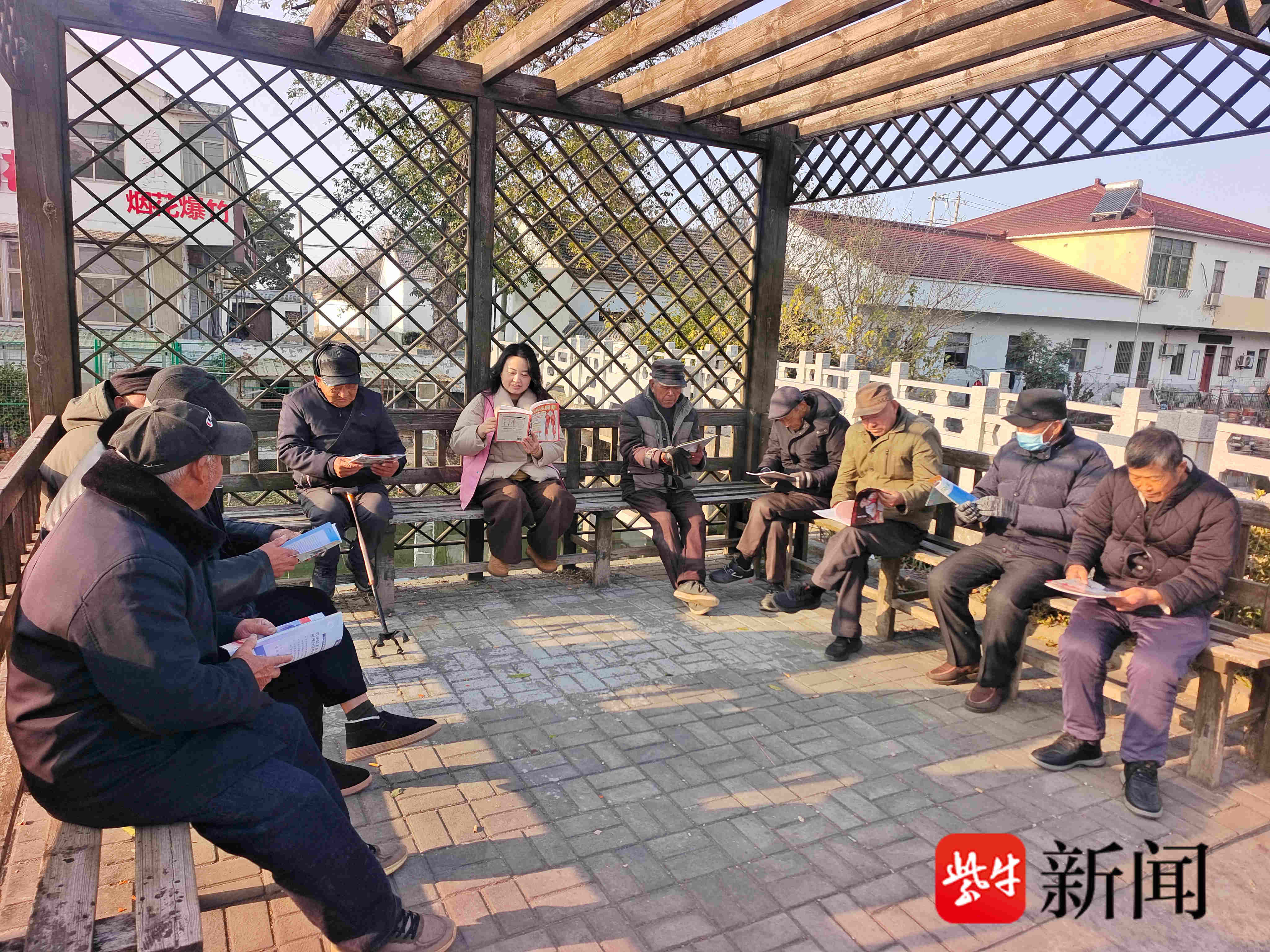 扬子晚报网12月18日讯(通讯员 王传巧 记者 张可)12月17日,南京栖霞区龙潭街道长江村组织开展“全民阅读 书香暖夕阳”主题阅读活动,通过“送学上门”的方式,在暖阳下的村平安守望亭里与老年村民分享科学健康养生类书籍和知识,让书香陪伴温暖冬日时光。