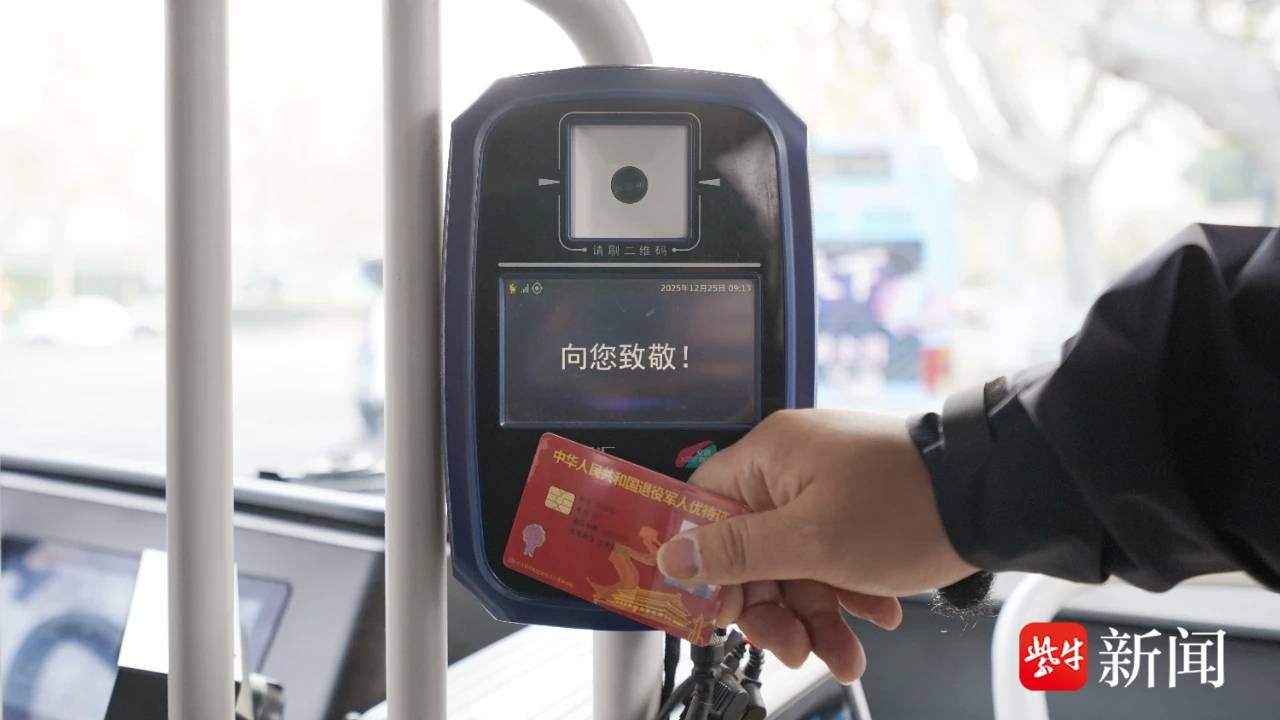 扬子晚报网12月26日讯(记者 闫春旭)记者从南京市退役军人事务局获悉,12月26日起,南京公交“全场景免费畅行”服务全面上线。全国范围内持有《中华人民共和国退役军人优待证》或《中华人民共和国烈士、因公牺牲军人、病故军人遗属优待证》的乘客可直接刷优待证(实体卡)免费乘坐南京公交、轮渡、有轨电车,还可免费办理公共自行车畅行卡。