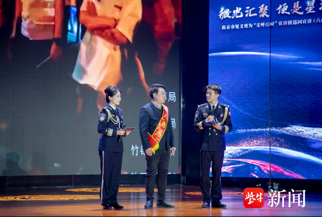 为弘扬见义勇为精神,12月25日下午,“微光汇聚 便是星河”南京市见义勇为“义呼百应”巡回宣讲活动在六合区新城小剧场举行。市、区见义勇为基金会有关领导,各工作站代表,民辅警代表,群众代表等近300人参加。