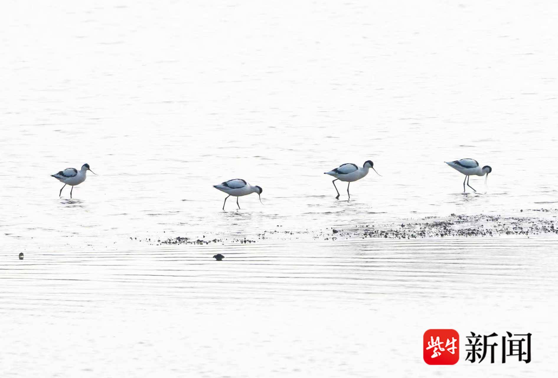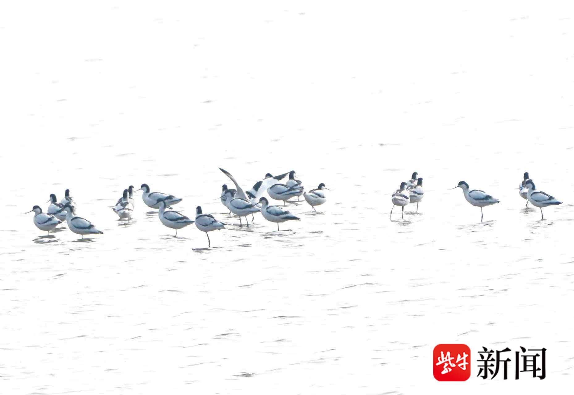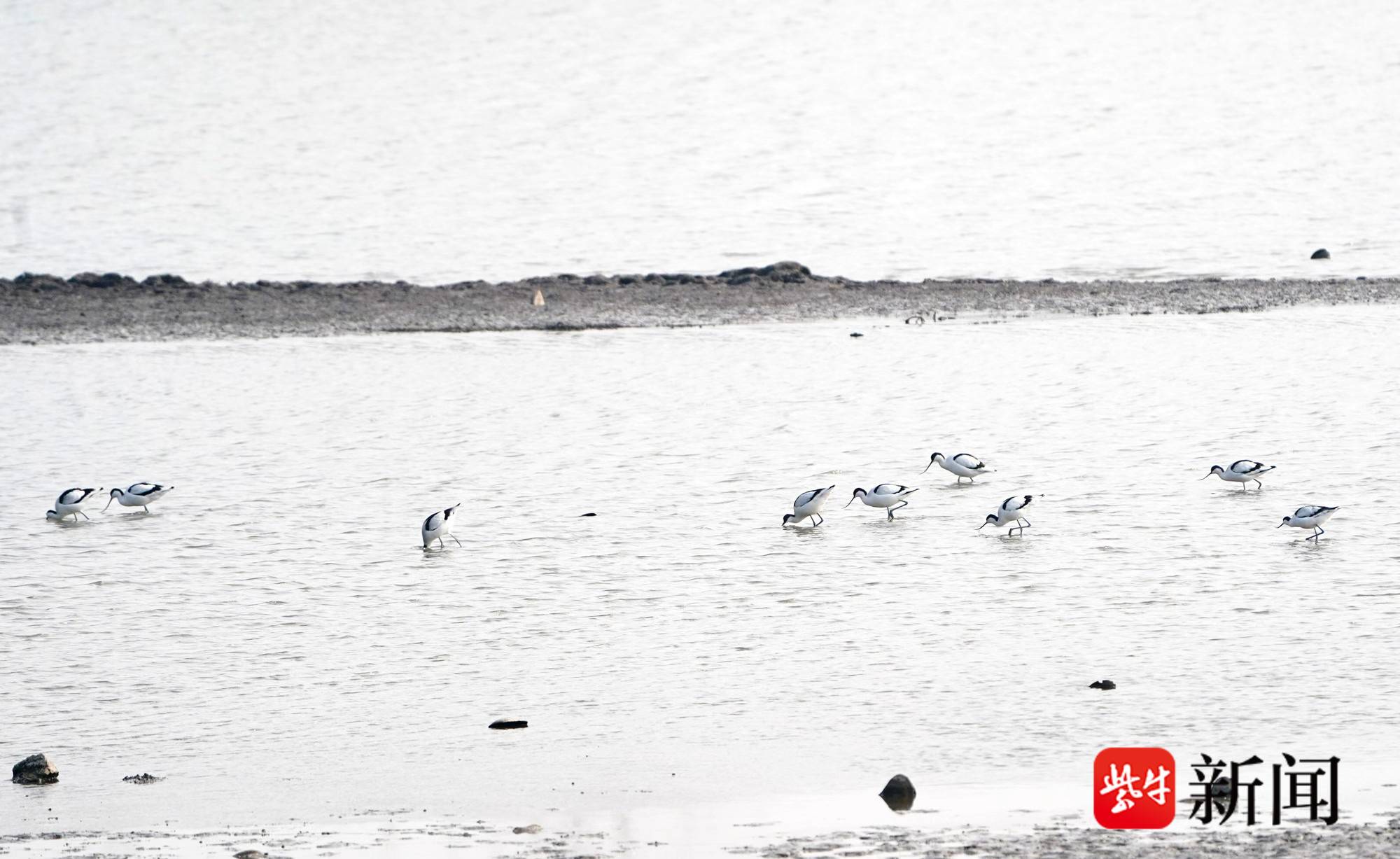 最近,在南京江北的多处江滩上,飞来了一些以前很少见的鸟儿。这些鸟长着长长的腿,体形略瘦,黑白相间。一边是江滩,一边是江水,只见这些鸟儿时而在水中捉鱼,时而在河面盘旋。