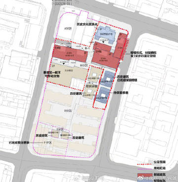 该地块拟率先启动实施,即对保留建筑进行修缮,同时新建两栋住宅楼。