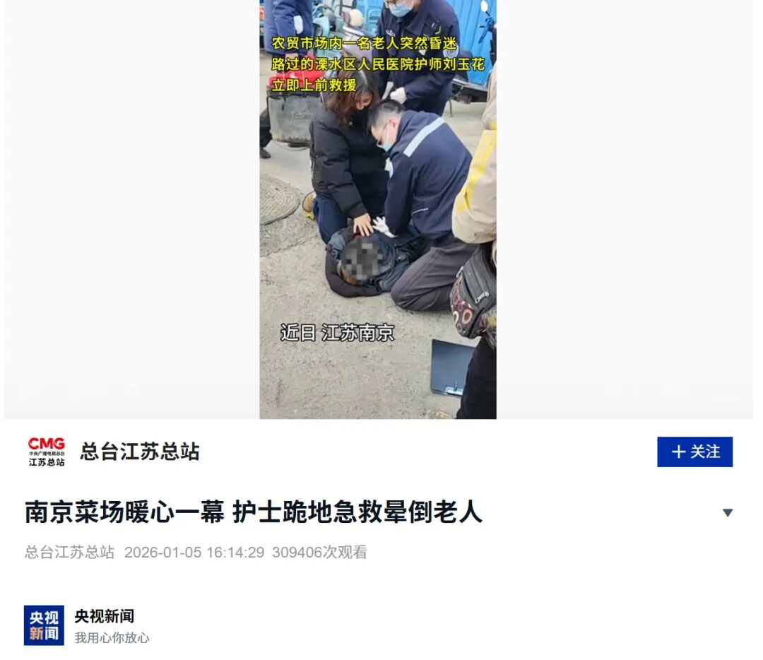 南京护士跪地急救晕倒老人