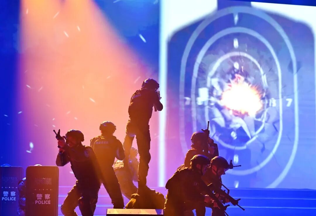 在报告活动现场,这支“王牌战队”压轴登台,带来特警技战术展示《夺冠》。在激昂的乐章中,38名特警队员身穿战训服,队形如利剑般开合,动作刚猛,势如破竹。擒拿、格斗、翻越,每一个招式都凝聚着千锤百炼,都宣告着“首战用我,用我必胜”的无畏宣言!