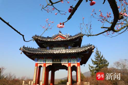 在梅花山转了一圈,梅花开了不少。博爱阁周围“粉红朱砂”点缀枝头,其花瓣层叠繁复,在微风中轻轻摇曳,吸引摄影爱好者捕捉粉白花海与冬日静谧的意境。山间植有35000余株梅花,涵盖380多个品种,包括“单瓣早白”“淡妆宫粉”等早花品种,花态各异,如“单瓣早白”花期早而长。而“情人梅”造型独特,寓意美好,是热门拍照点。