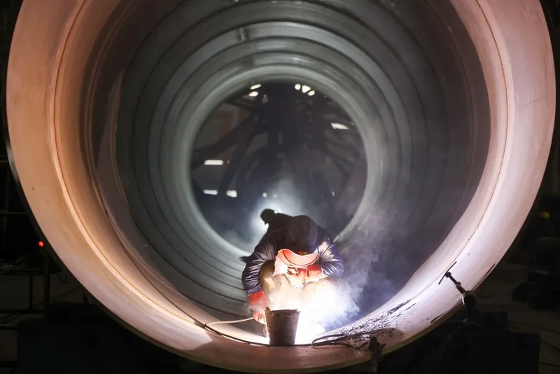 工人们正有条不紊地进行着组对、焊接、检测等工序,全力冲刺一季度“开门红”,确保重点订单如期交付。