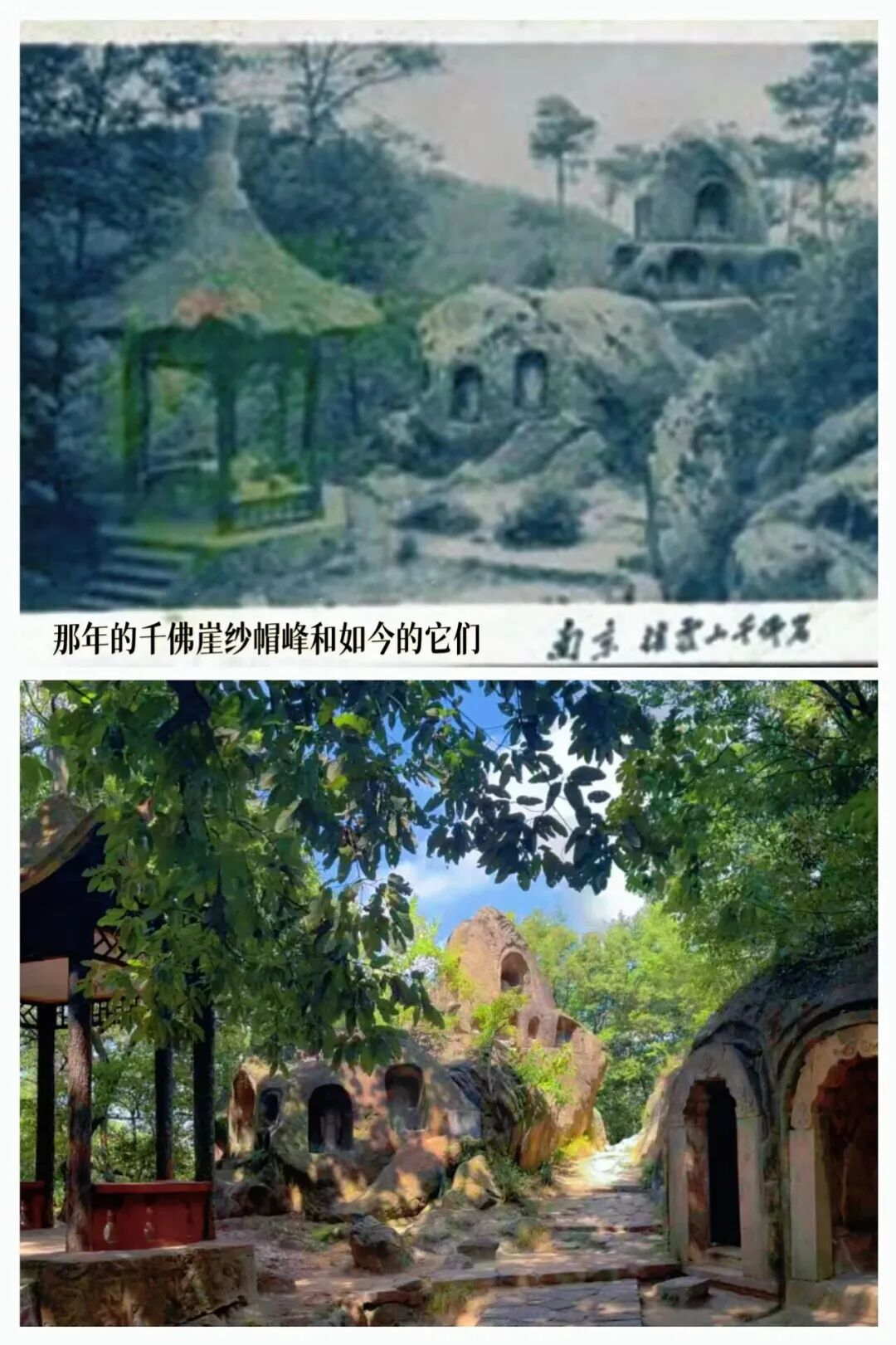 老照片里,摄山小径覆着薄霜,六朝松孤挺如笔,千佛岩的斑驳与古寺飞檐共沐斜阳;