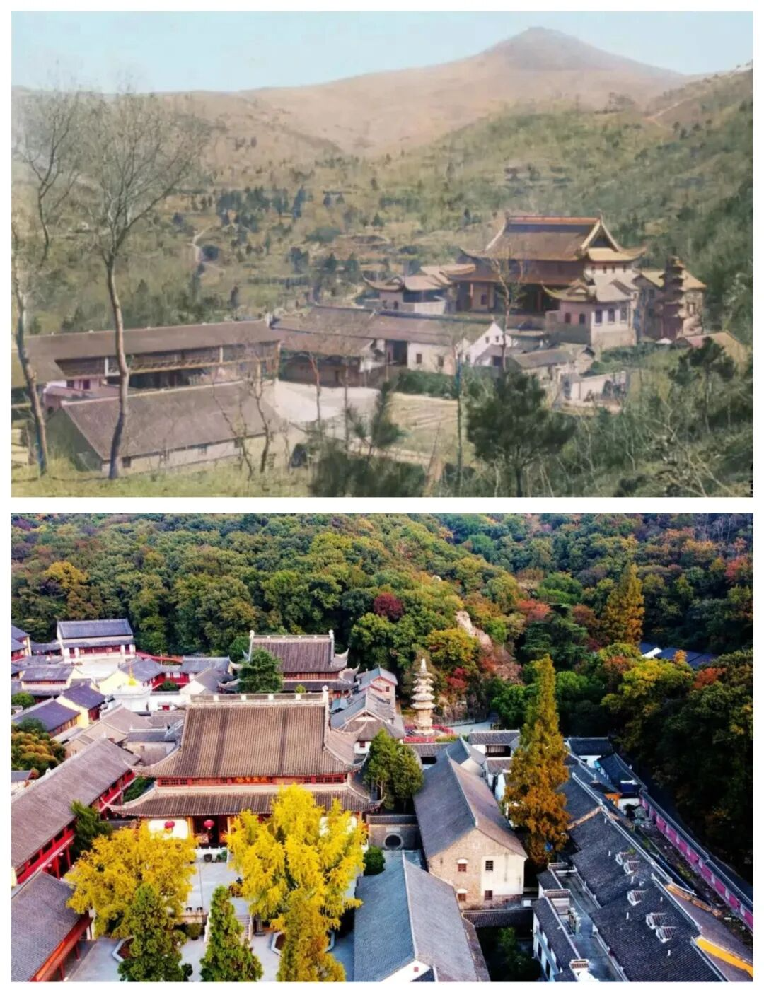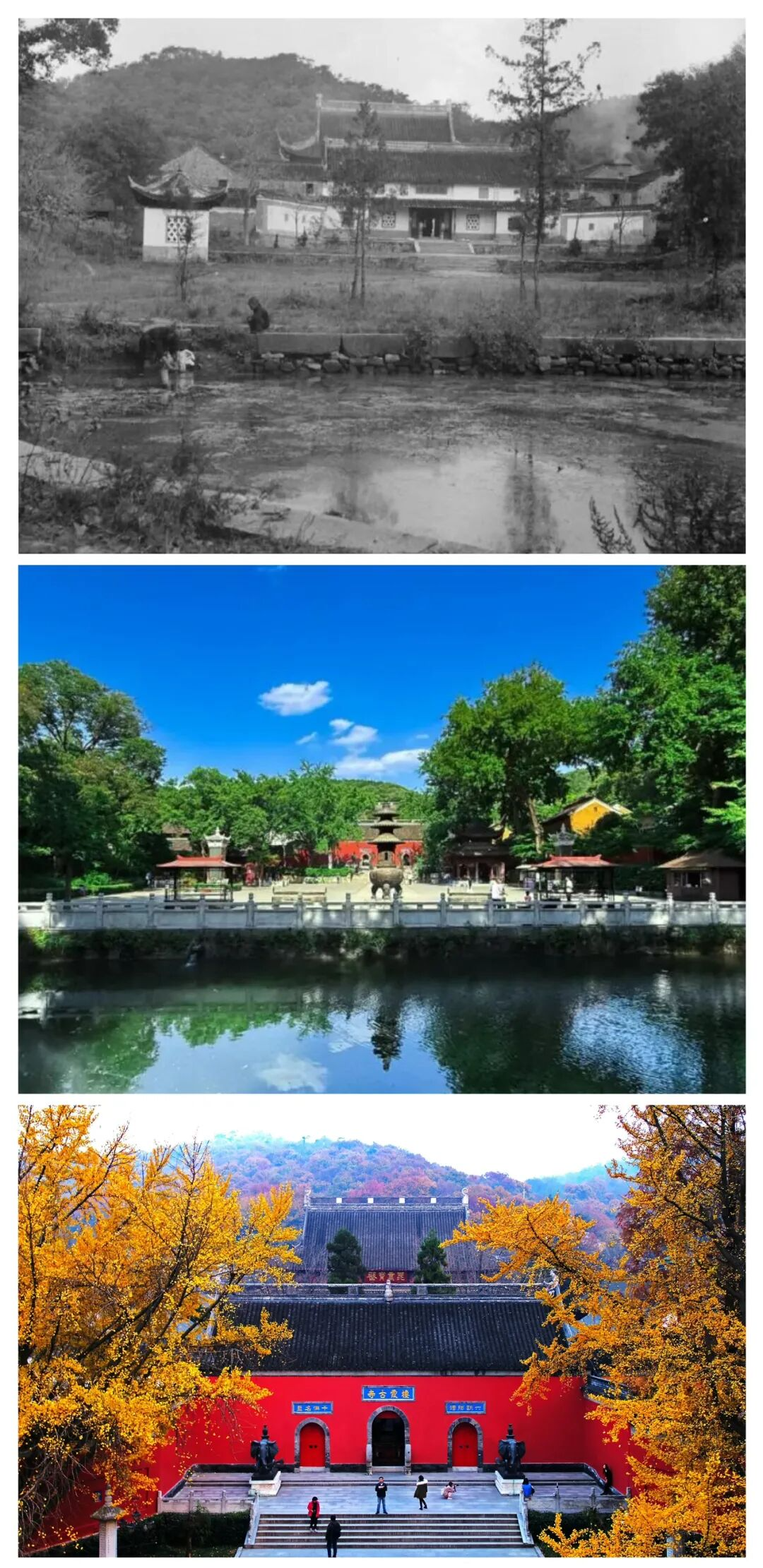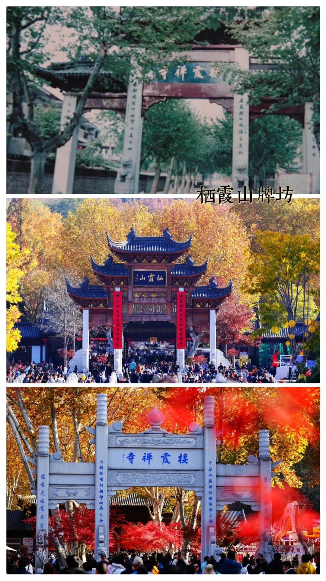 老照片中的栖霞,是《桃花扇》的余韵悠长,是明征君舍宅为寺的清寂;如今的它,是地质博物馆的鲜活课堂,是红叶节的热闹盛景。不变的是2.8亿年的栖霞灰岩,是时光沉淀的温润与厚重。