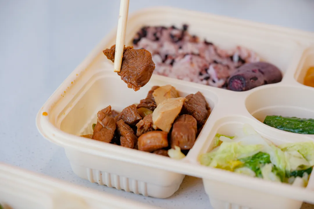 主打科学配比,25%碳水,25%蛋白质,50%蔬果。涵盖杂粮饭粗粮、低脂肉类蛋白、新鲜蔬果,每餐热量硬控在500千卡以内。
