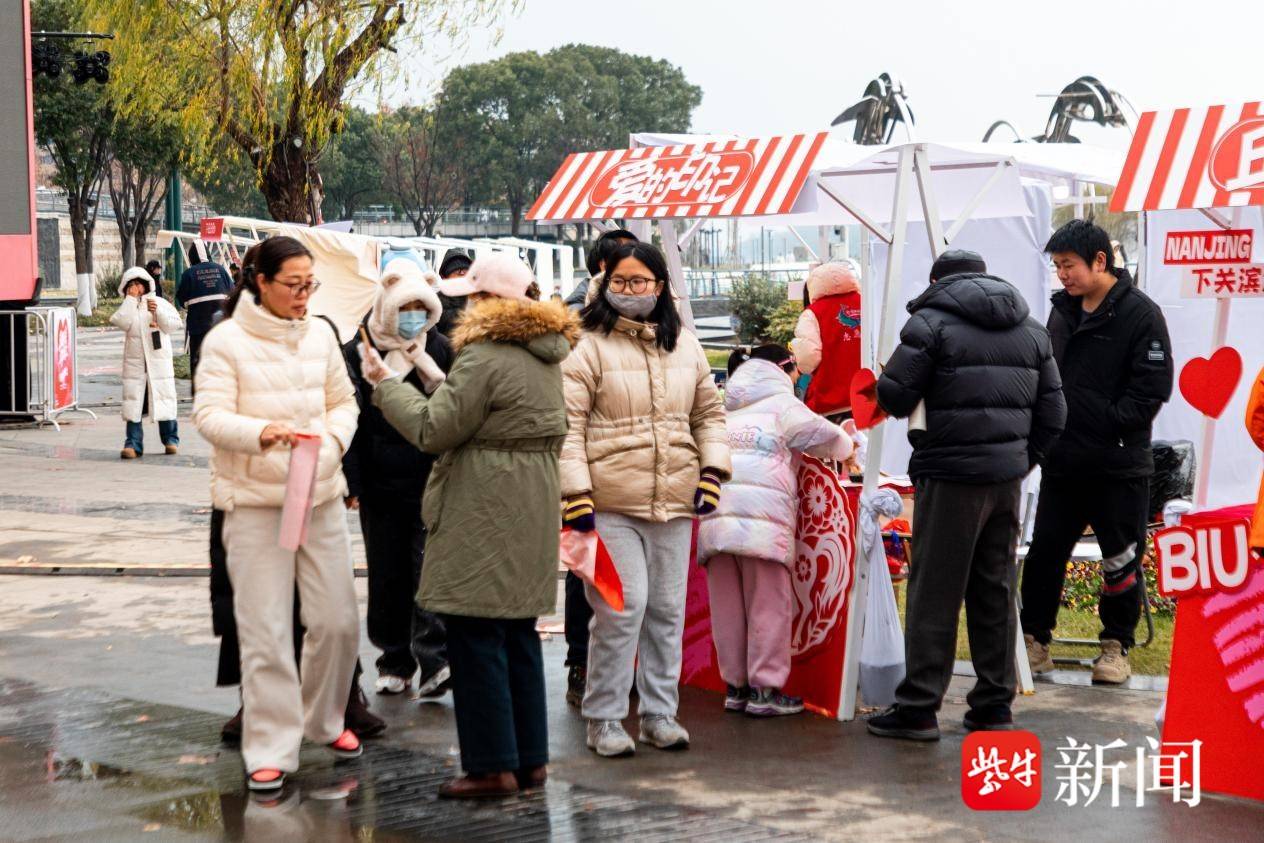 下关滨江这个融合自然资源和城市便利性的都市亲水微度假景区,通过市集+互动+表演,在江边构建出好看、好逛、好玩的活力场。从中山码头前与百年建筑温情同框的巨型爱心艺术装置,到欢乐舞台绕树一圈的爱心环;从汇聚天南地北风味的“新动市集”,到趣味性十足的轻量化互动;从“蓝色雨乐队”在江风中的现场演唱,到主舞台大屏变身“全民游戏厅”……市民与游客体验到有别于传统商圈、富有质感的新年仪式感。