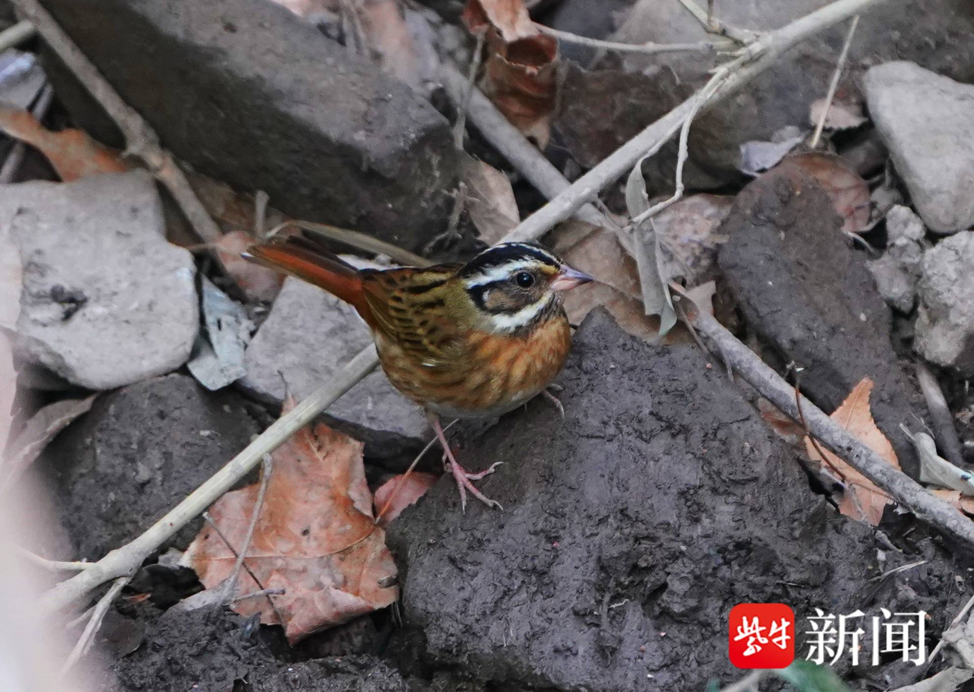 南京一位自然摄影师告诉记者,他在现场看见好多种类的鸟儿飞来小水溪边,觅食、喝水或洗浴。这些鸟儿也乐于把此处当成了免费食堂,不时前来就餐喝水。