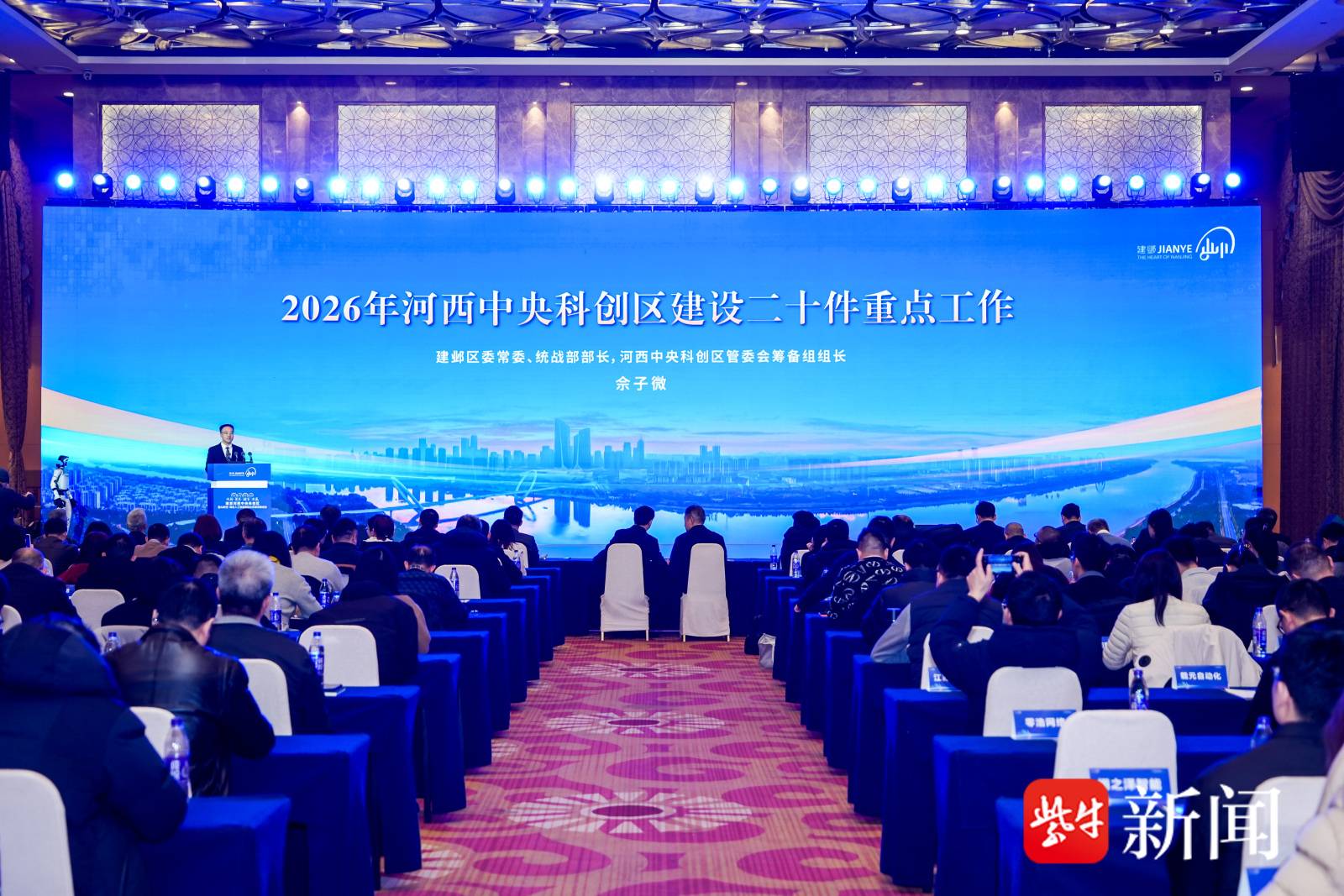 会上,一系列重磅规划与政策集中发布,为河西中央科创区高质量发展注入强劲动力。建邺区委常委、统战部部长,河西中央科创区管委会筹备组组长佘子微发布了2026年河西中央科创区建设二十件重点工作和《AI时空・南京人工智能国际社区建设三年行动计划(2026-2028年)》。