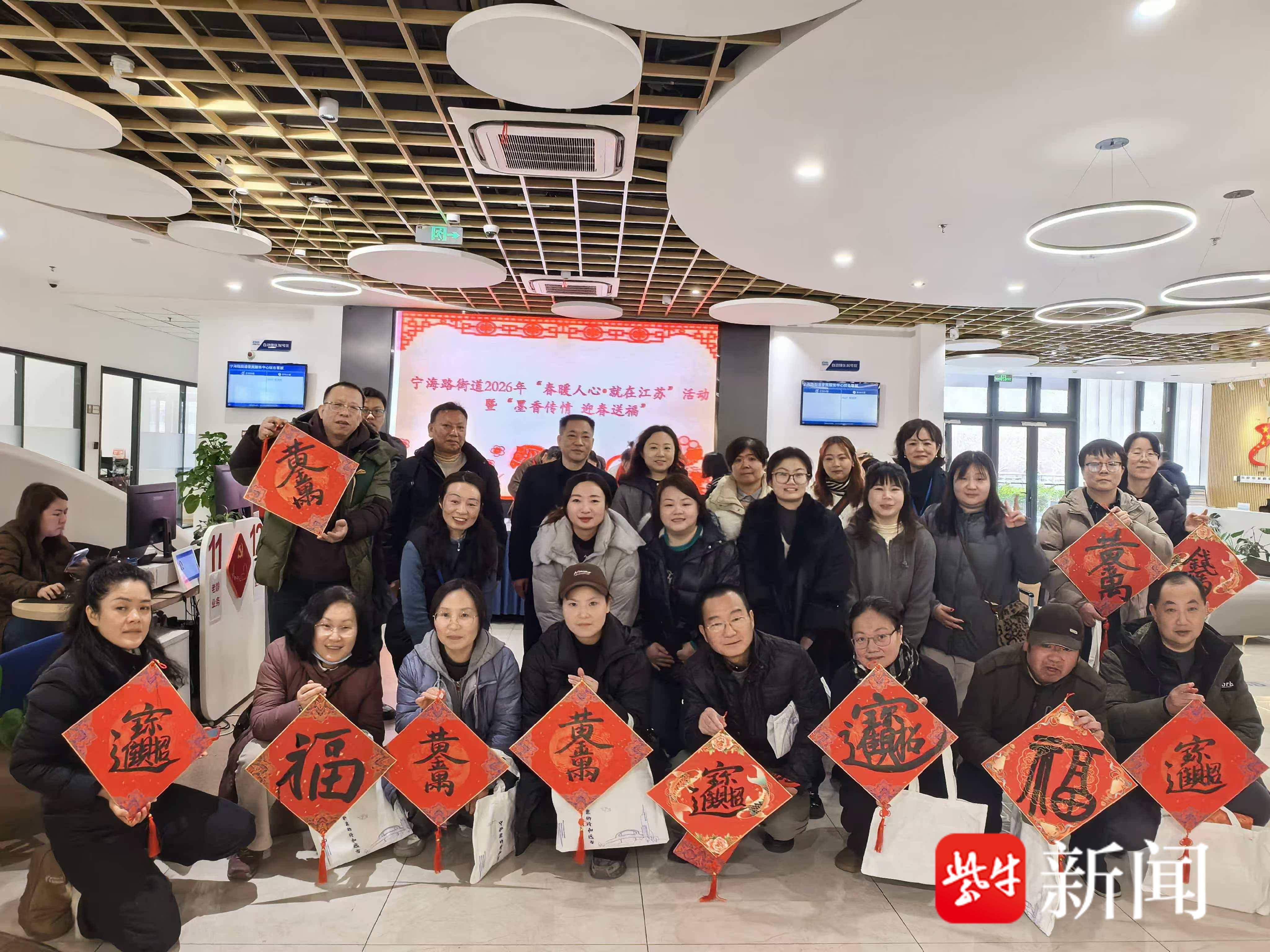 新春将至,年味渐浓,宁海路街道还特别邀请书法老师现场泼墨,为参与活动的居民书写春联、“福”字和“马到成功”等吉祥寄语。红纸铺展,墨香四溢,一副副笔力遒劲的春联、一个个饱满的“福”字,传递着对新年安居乐业、幸福美满的美好祝愿,居民们则有序排队领取这份特别的“文化年礼”,现场暖意融融,欢声笑语不断。
