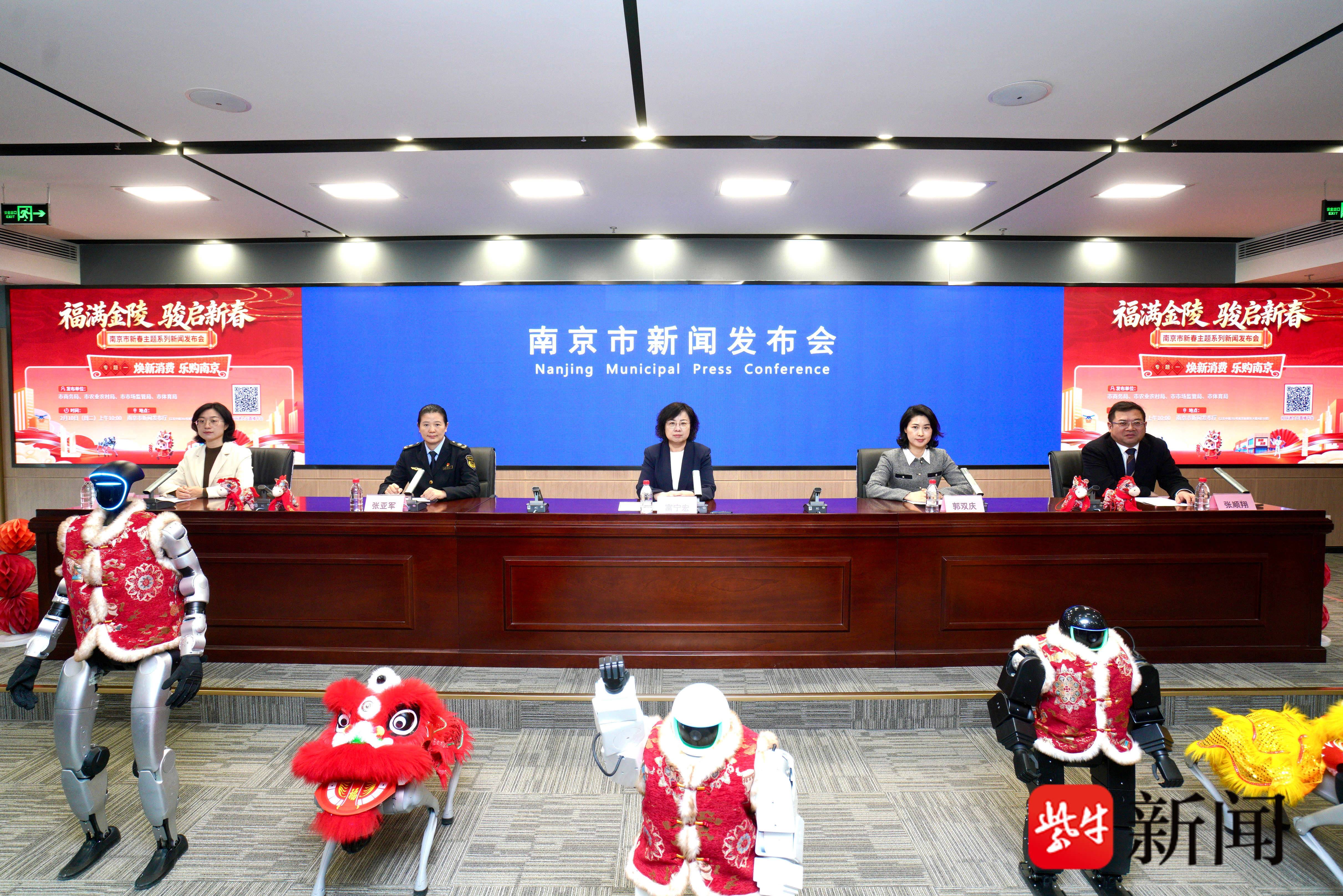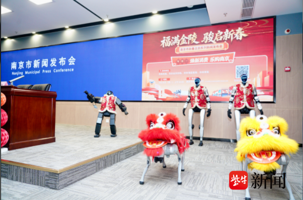 新闻发布厅现场布置AI智能展区,特别设置“科技年货”展示环节,智能美甲机、3D打印机机器人等各类“科技年货”产品,全方位凸显人工智能的前沿应用,让大家直观感受到科技消费的新潮流。机器人舞狮憨态可掬、舞蹈机器人灵动的动作搭配喜庆的新春装扮,将节日氛围推向高潮。科技消费已成为今年南京城市消费的新亮点,科技感与趣味性兼具的发布会现场,生动诠释了“焕新消费”的内涵。
