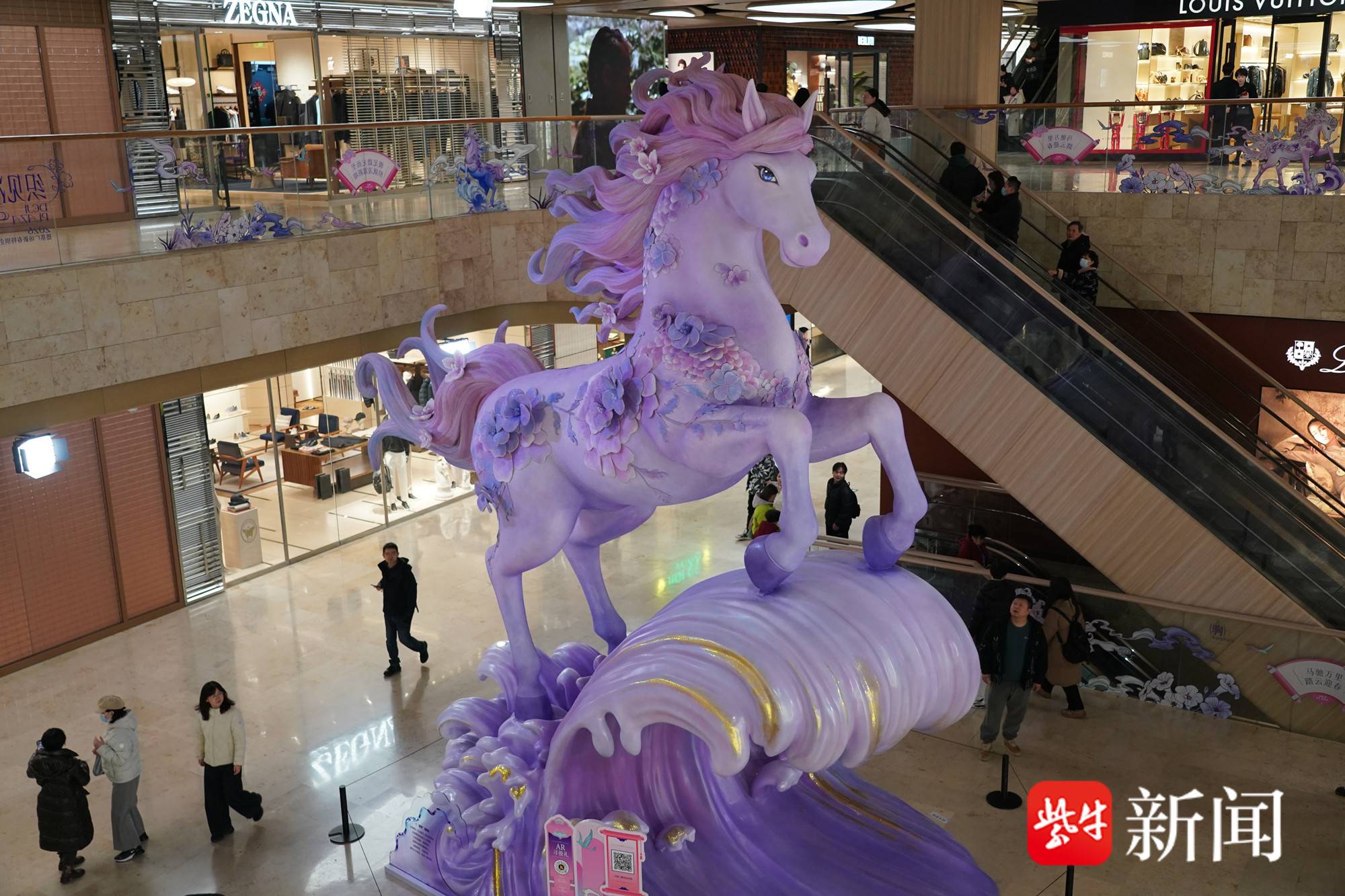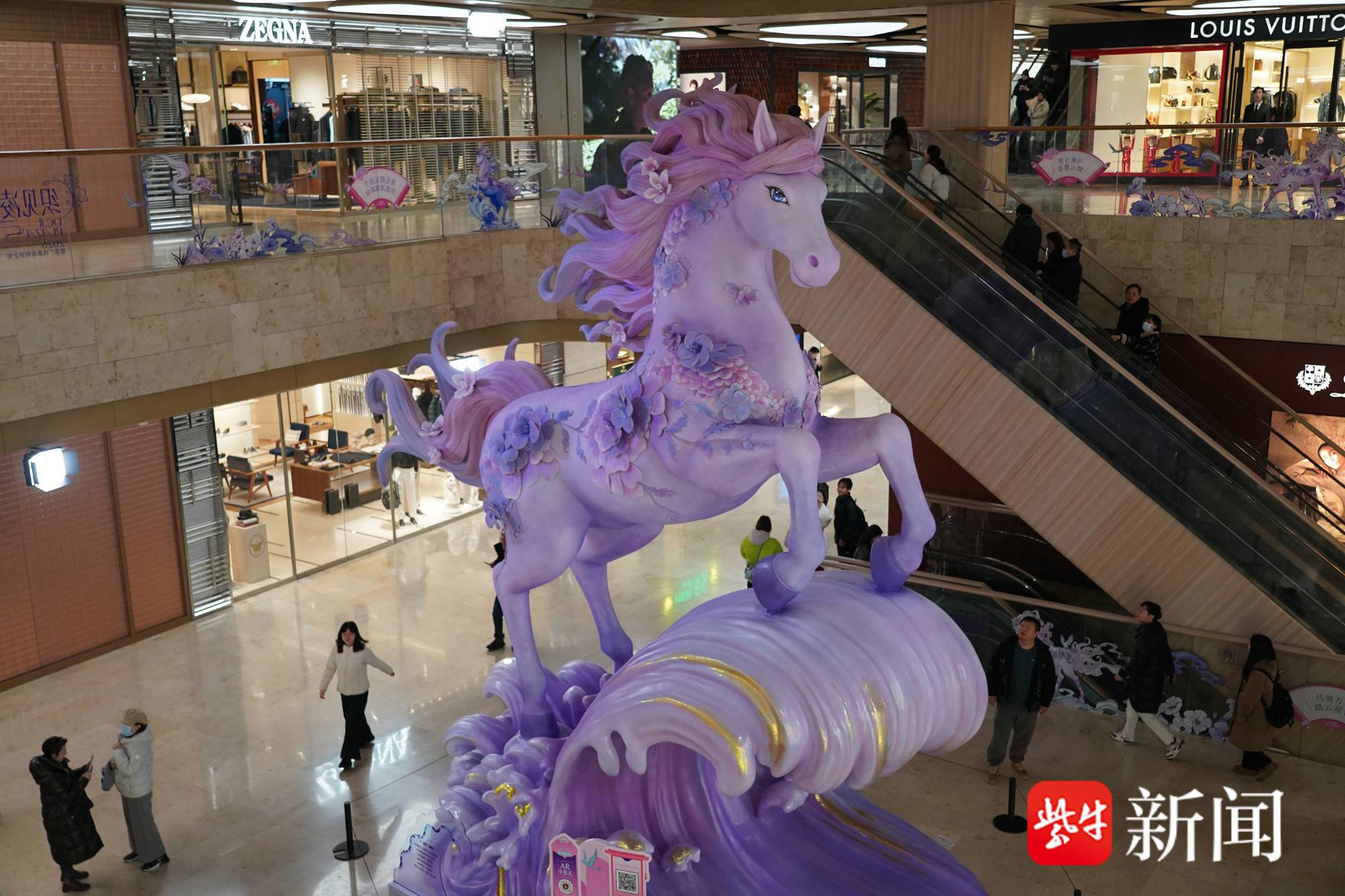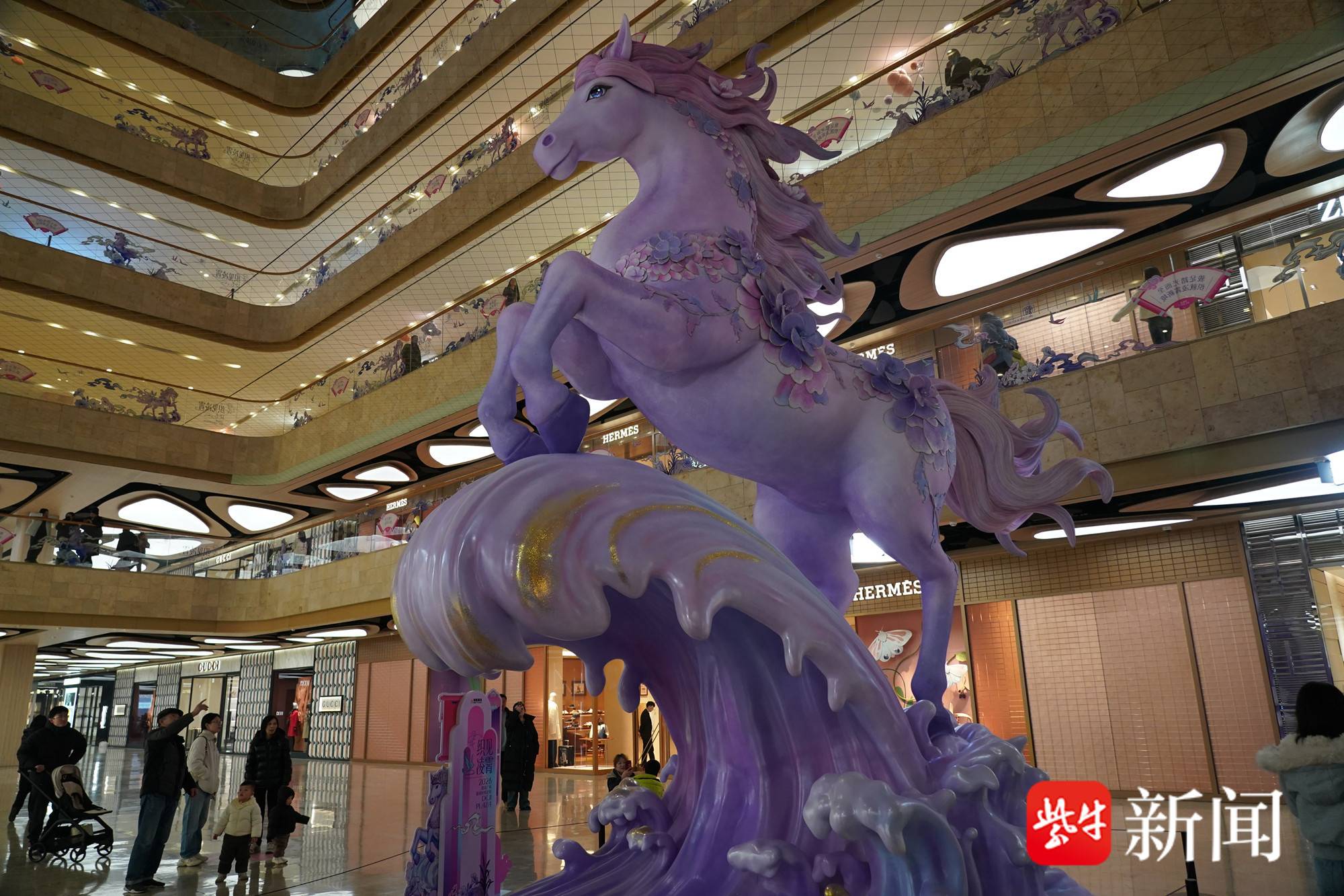 扬子晚报网2月10日讯(通讯员 武家敏 记者 梅建明)近日,马年生肖艺术装置“凌霄献瑞”正式亮相南京市中心一商场内的广场上,为这里的商业空间赋予艺术内涵,吸引了不少市民游客欣赏和拍照。
