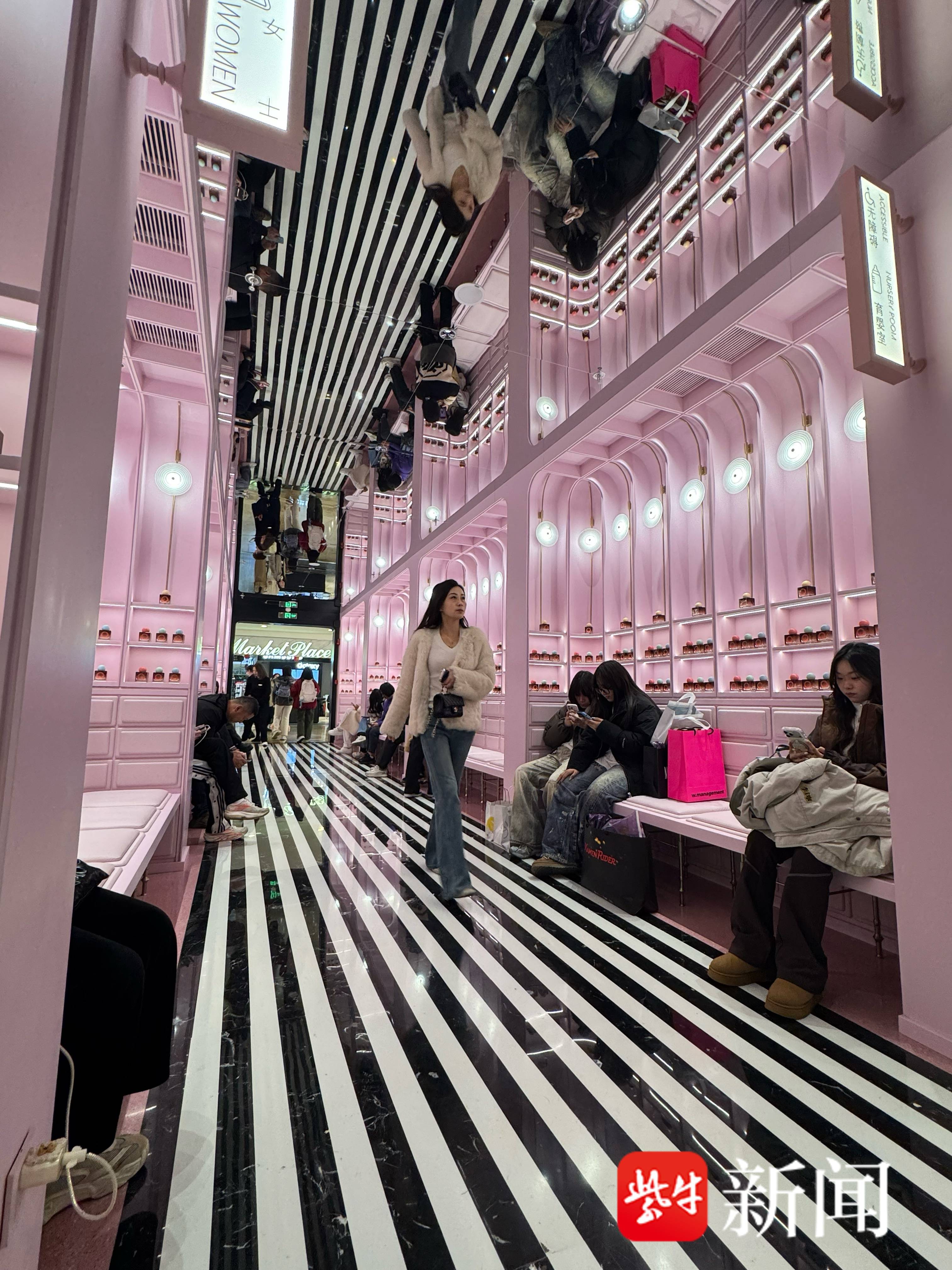 正逢腊月二十三小年夜,南京德基广场人流如织。位于德基广场二期负1楼的“解忧所”(网红厕所)门口,举着手机拍照打卡的队伍,比不少奢侈品店门口的还长。人们踮脚张望,不时举起手机拍摄,发出“哇”的惊叹——这里,是被网友称为“厕所界爱马仕的艺术空间”。