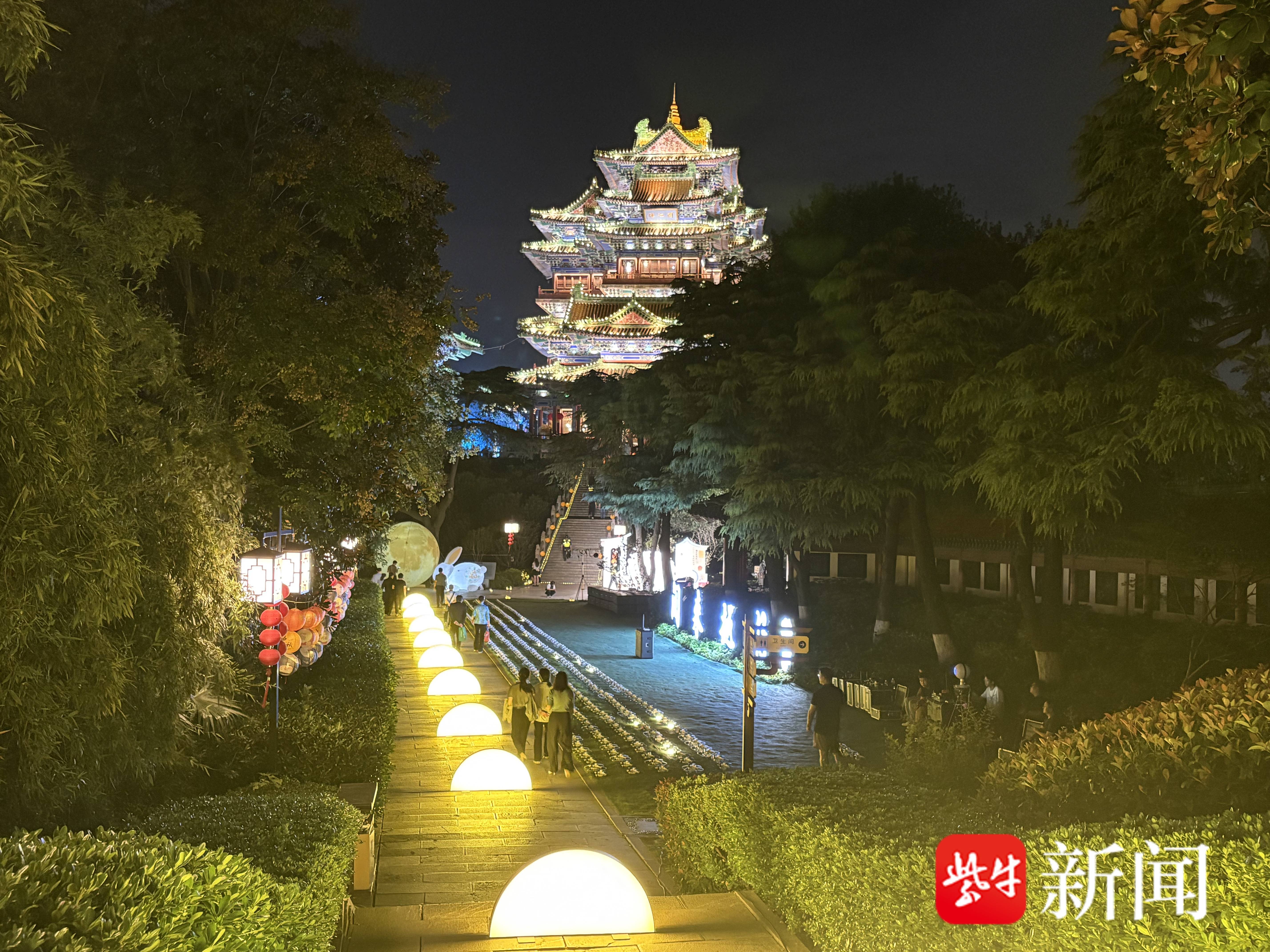 颐和路上,一张“福”字贴上门,心愿便落了地。夜幕低垂,紫金塔和阅江楼流光溢彩。