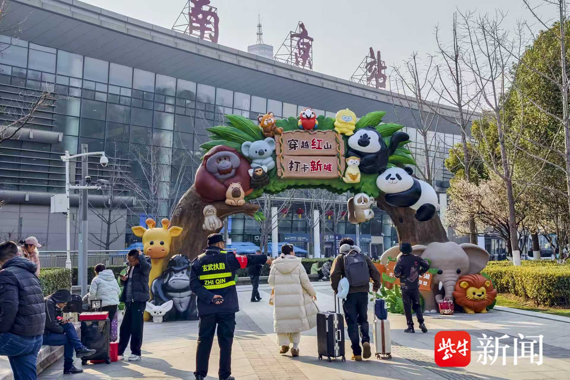 此外,玄武湖综管办在南京站南北广场、神武路打造迎新美陈,设置“马上来宁”打卡装置,融入区域IP与动物明星元素,营造出可看、可玩、可互动的浓厚节日氛围,成为游客打卡热门点位。