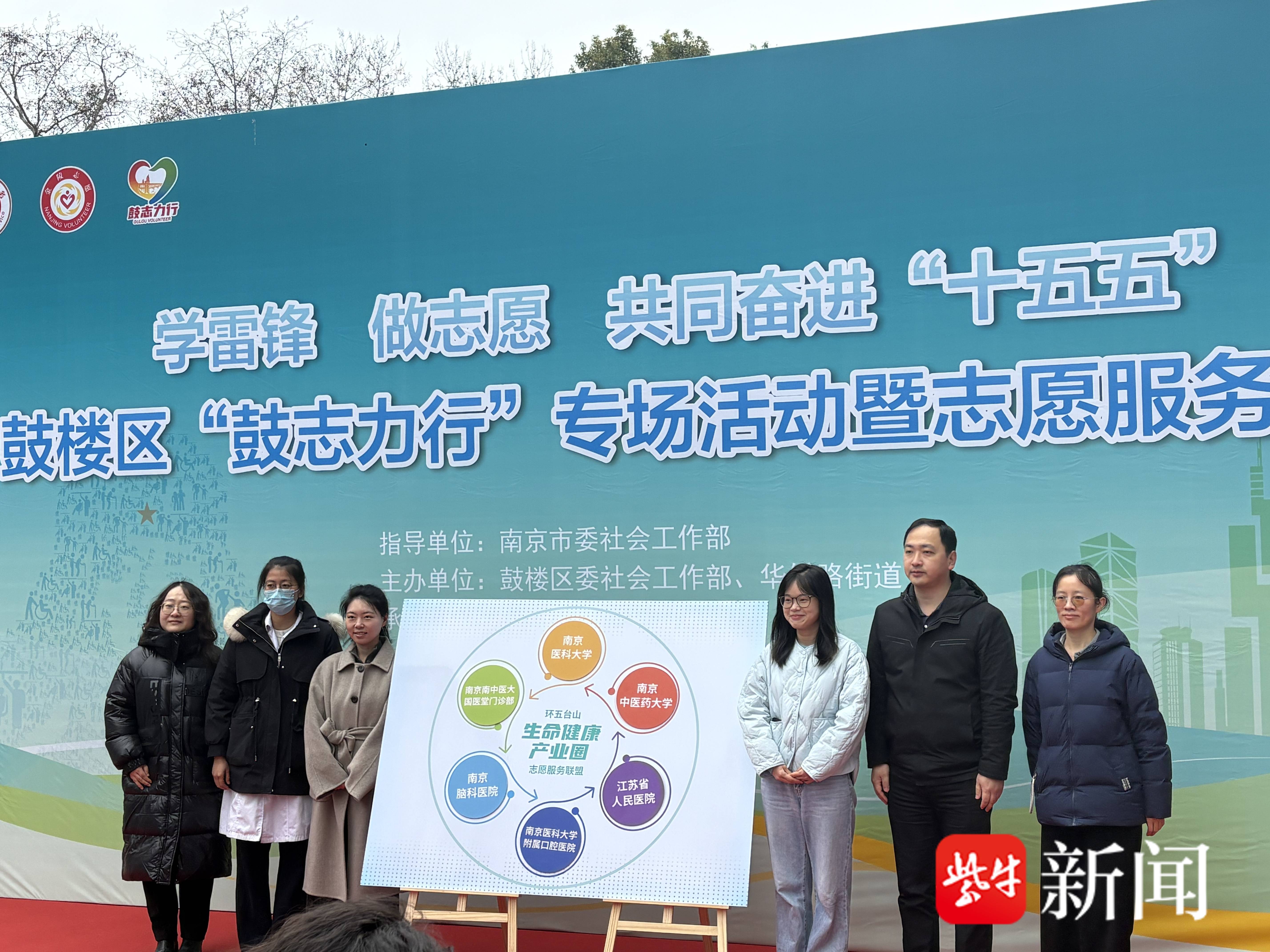 在3月5日学雷锋纪念日到来之际,学雷锋,做志愿,共同奋进“十五五”——南京市鼓楼区“鼓志力行”专场活动暨志愿服务市集,在金智里园区广场举行,环五台山生命健康产业圈・志愿服务联盟也在现场正式成立。