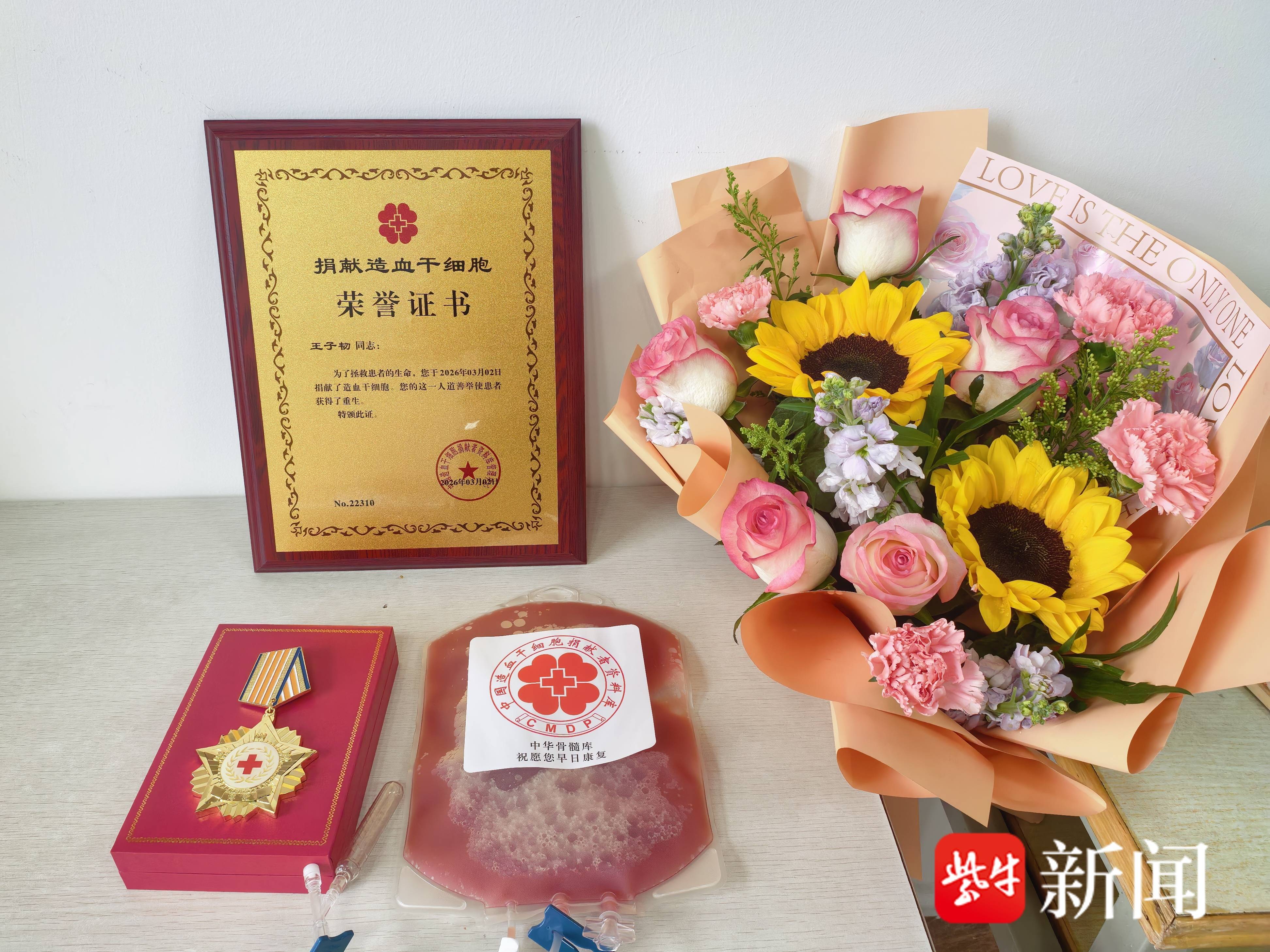 “几十万分之一甚至更低的概率,竟然降临到我身上——这是生命与生命的奇妙相遇。”王子韧说。记者了解到,王子韧的母亲常年坚持无偿献血,截至目前献血量已达一万两千多毫升。2018年5月在母亲的影响下,刚满18岁的子韧在连云港老家第一次参加无偿献血。那次献血中,他第一次了解到造血干细胞捐献是拯救白血病等重症血液病最有效的方式之一,在不影响自身健康的情况下,却能给一个濒临绝望的家庭带去重生的希望。于是他主动采样加入造血干细胞资料库,成为一名造血干细胞捐献志愿者。“对我而言,无偿献血是举手之劳的爱心,而加入捐献库,就是多给生命一份可能,用微小的行动为素不相识的人留存一份生命火种,这是一件很有意义的事。”