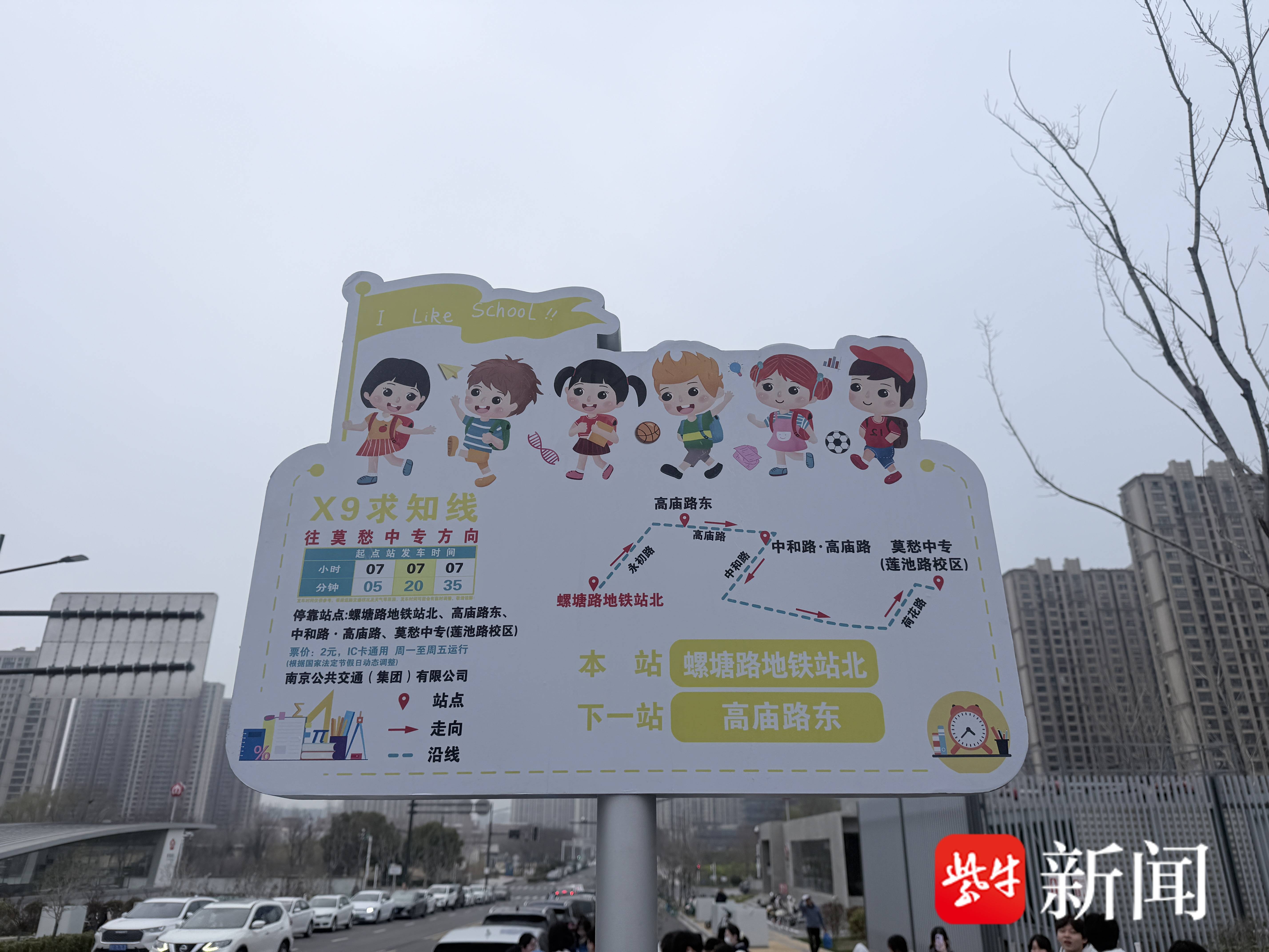 扬子晚报网3月5日讯(记者 笪越)新学期伊始,南京公交再添暖心举措,第三客运分公司于3月5日开通求知线X9路。线路起讫站点为螺塘路地铁站北至莫愁中专(莲池路校区),串联地铁站、教学区与住宿区,为该校师生切实解决上、下学等出行问题。