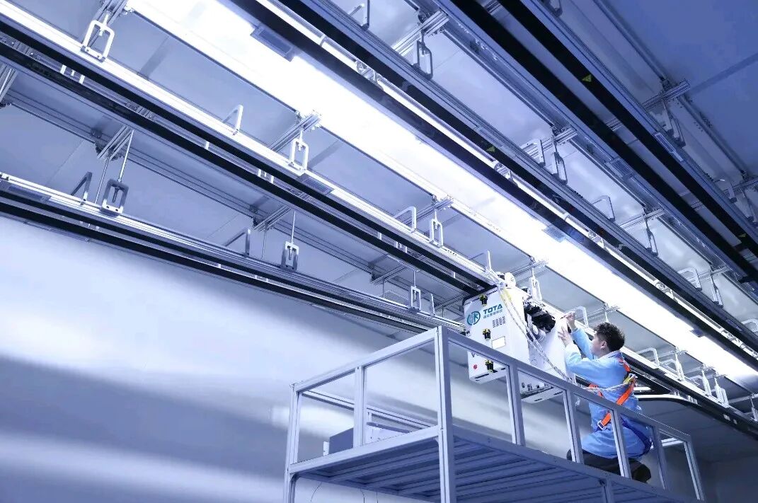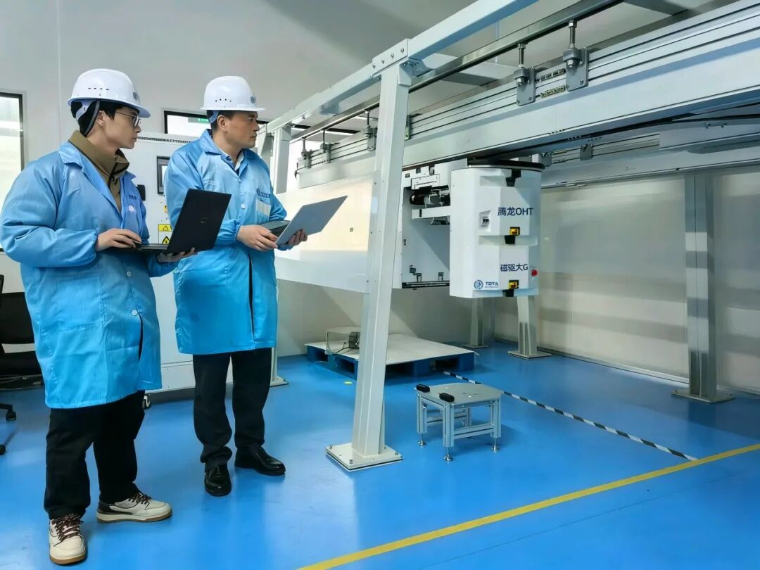 如今,公司在第一代旋转伺服天车“麒麟”的基础上,持续攻克技术难题,成功研制出磁驱天车“腾龙”,该产品实现了关键零部件100%国产化。与第一代产品相比,“腾龙”采用了自主研发的磁悬浮无接触驱动技术,运输过程中实现零磨损、零粉尘,从根本上解决洁净度问题,同时实现微米级的精准定位。