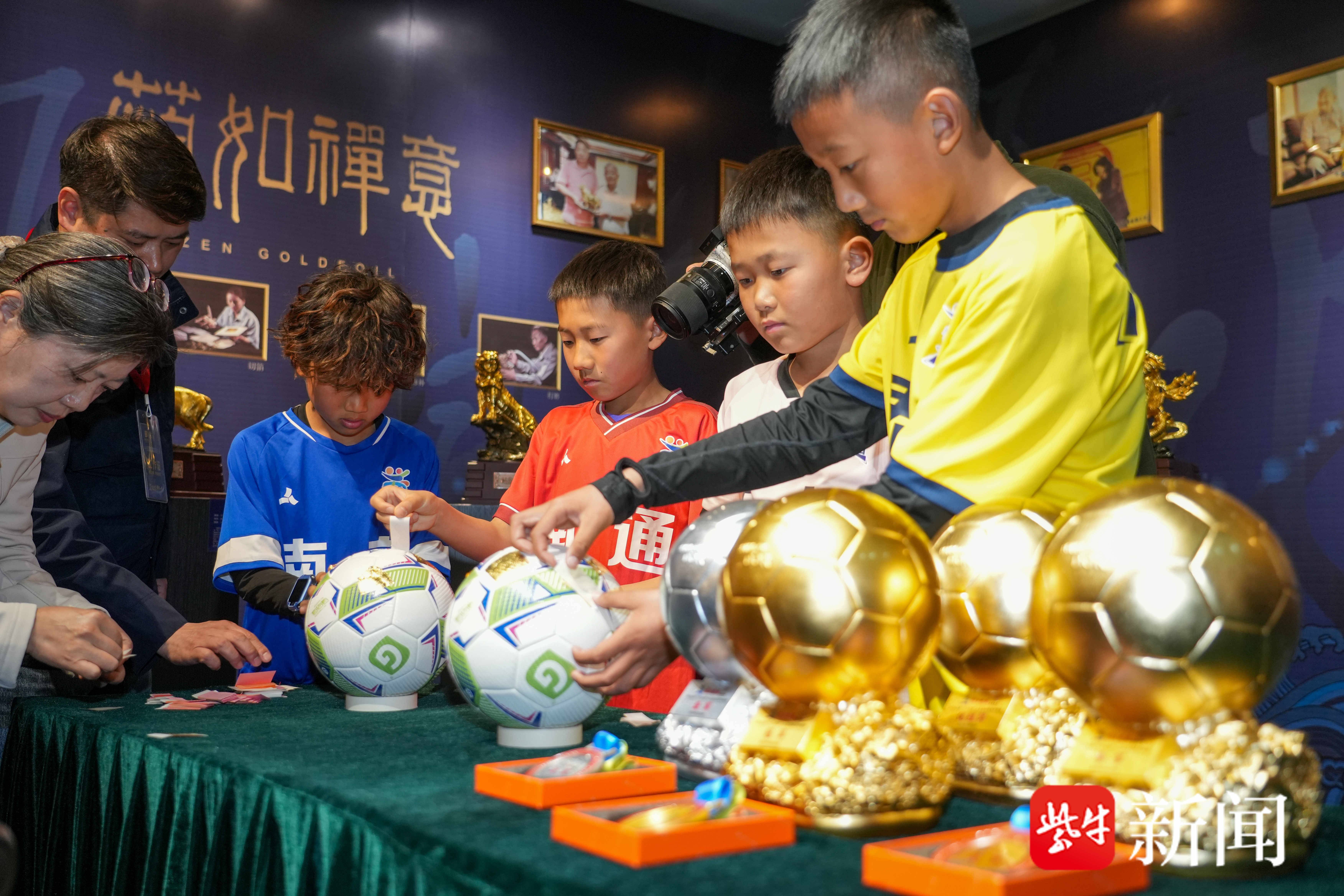 “一片金箔,要经过上万次锤打,才能薄如蝉翼、熠熠生辉。这份匠心,正如足球精神——只有不断拼搏、不断努力,才能在赛场上闪耀属于自己的光芒!” 在随后的金箔艺术馆参观环节,领导嘉宾们与全体小球员、教练员共同为本次赛事的“小苏超”专用球贴金。每位小球员都化身金箔小匠人,亲手贴上一张张金箔,共同贴出了寄托着少年们金光闪闪足球梦的“梦想之球”。