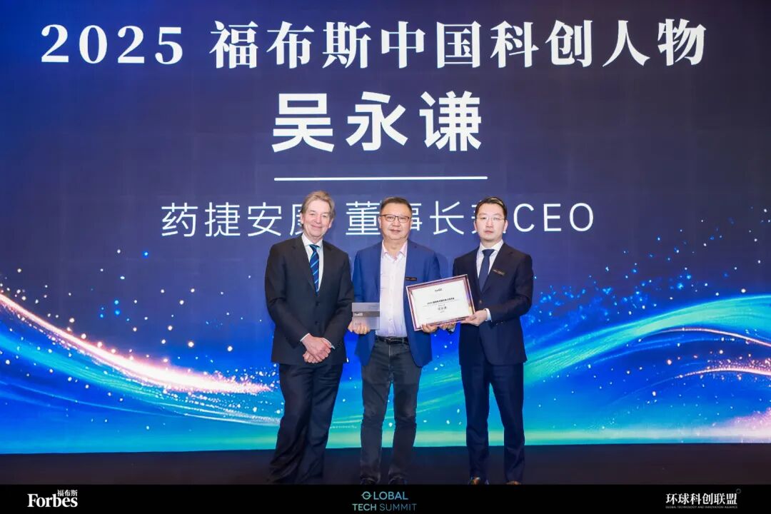 2025福布斯中国“科创人物”榜单汇聚了各领域顶尖科创力量。与吴永谦博士一同入选的,还有阿里巴巴集团主席蔡崇信与CEO吴泳铭、寒武纪创始人陈天石、小鹏汽车董事长何小鹏、字节跳动CEO梁汝波等业界标杆。他们的共同之处,在于以核心技术突破驱动产业变革——这也正是药捷安康在生物医药赛道持续发力的方向。