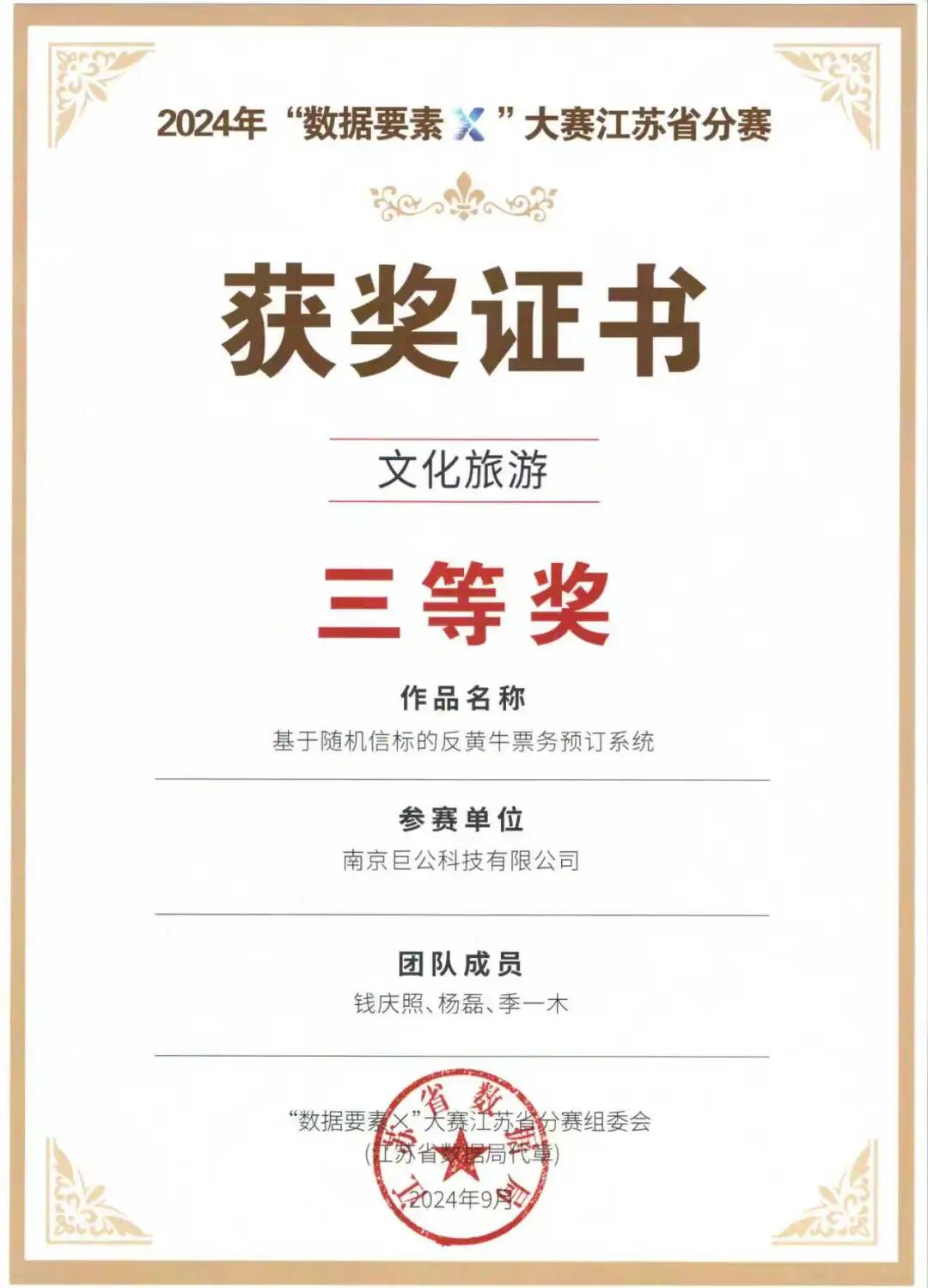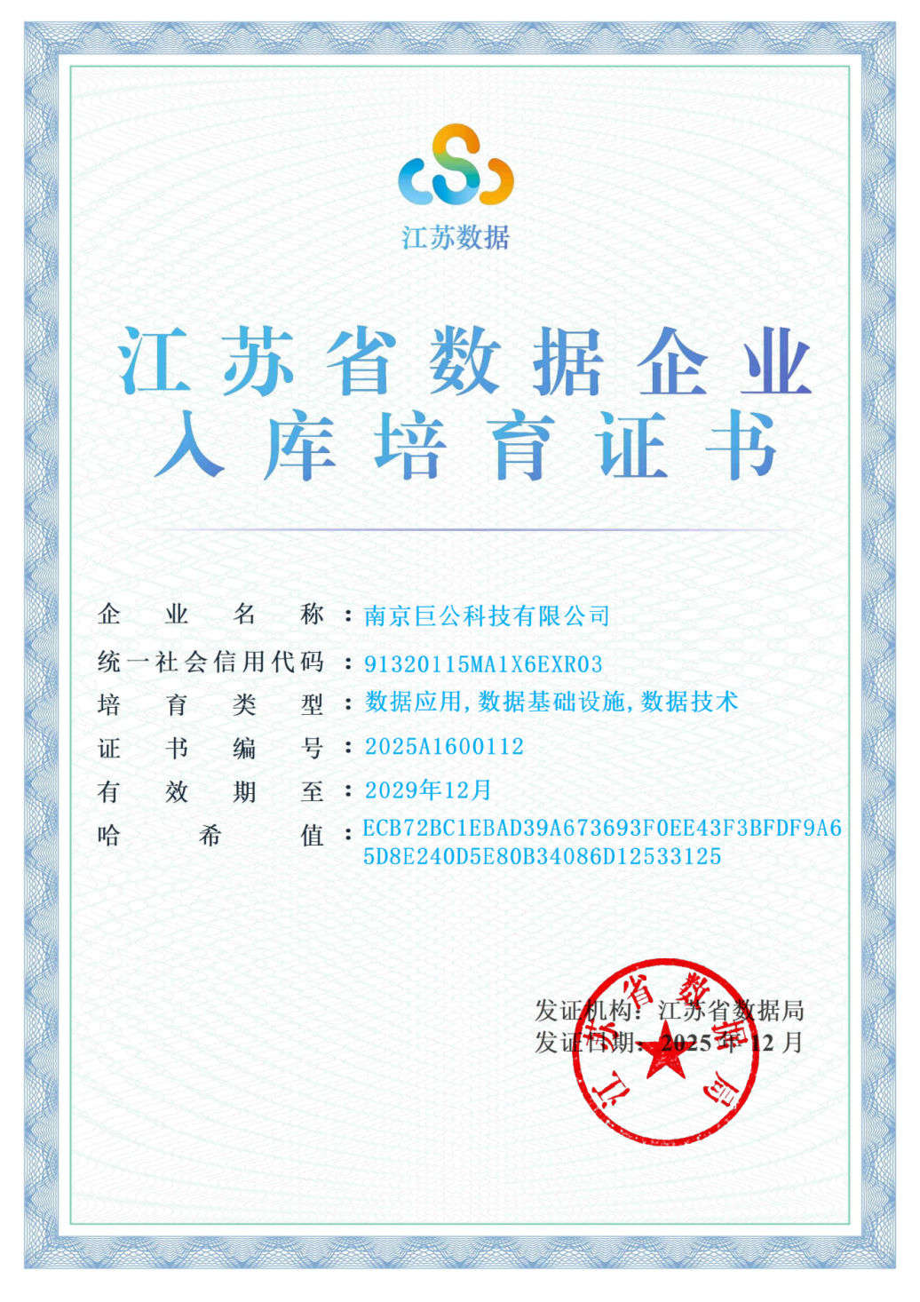 深耕领域多年,巨公科技的实力斩获了多项沉甸甸的荣誉:2025年江苏省第一批入库培育数据企业、2025江苏省公共数据“跑起来”案例、2025江苏公证十大典型案例、2024年“数据要素×”大赛江苏省分赛文旅赛道三等奖、2024年江苏省文旅厅全国智慧旅游推荐案例等。