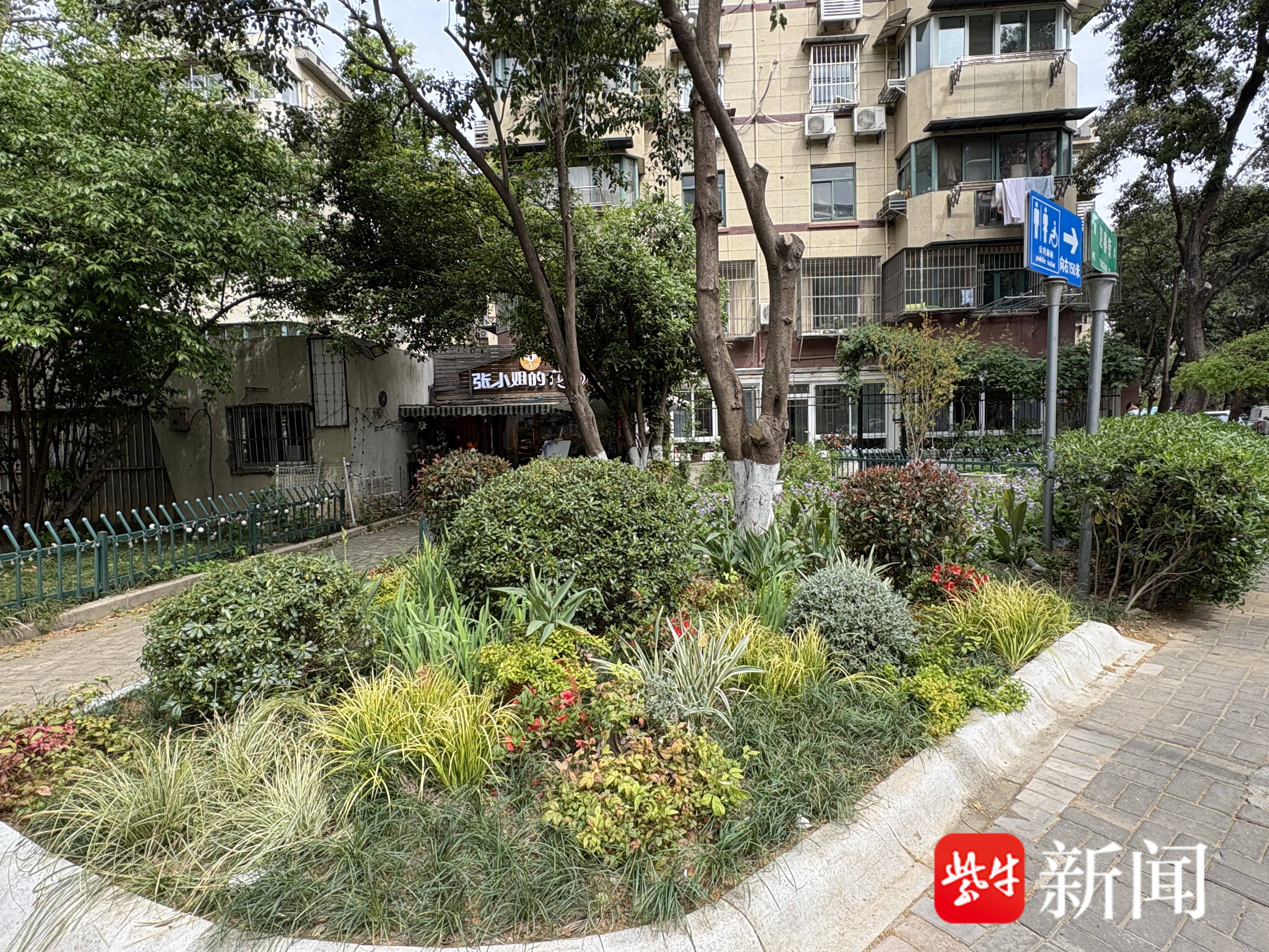 无独有偶,汉中门大街与迎春街交汇处,昔日的报刊亭已不见踪影,取而代之的是一座郁郁葱葱的街角小花园。乔木挺拔、灌木繁茂,二月兰点缀其间,令人赏心悦目。