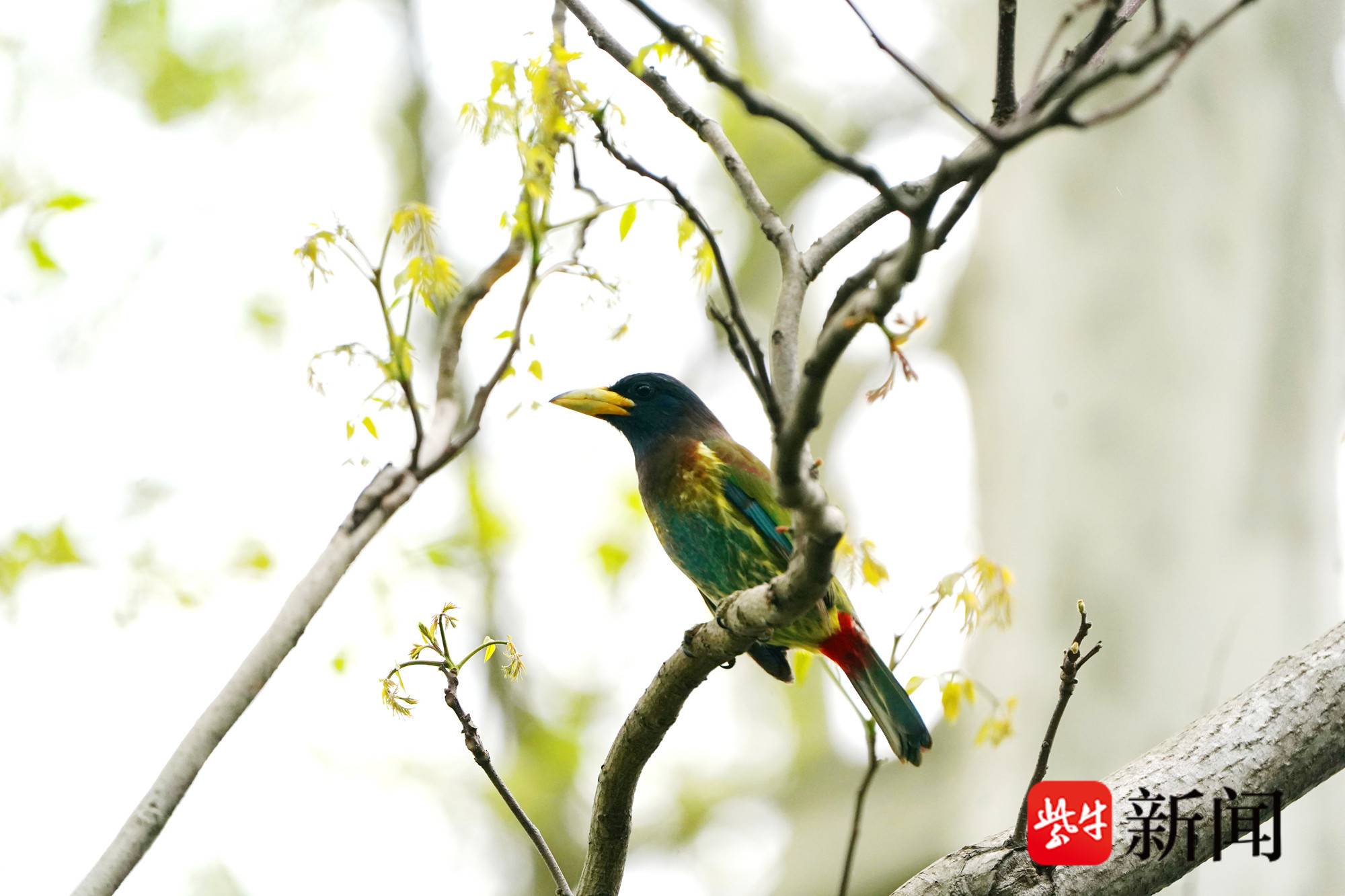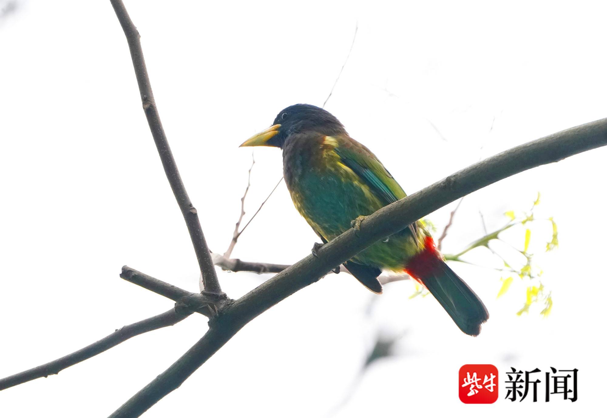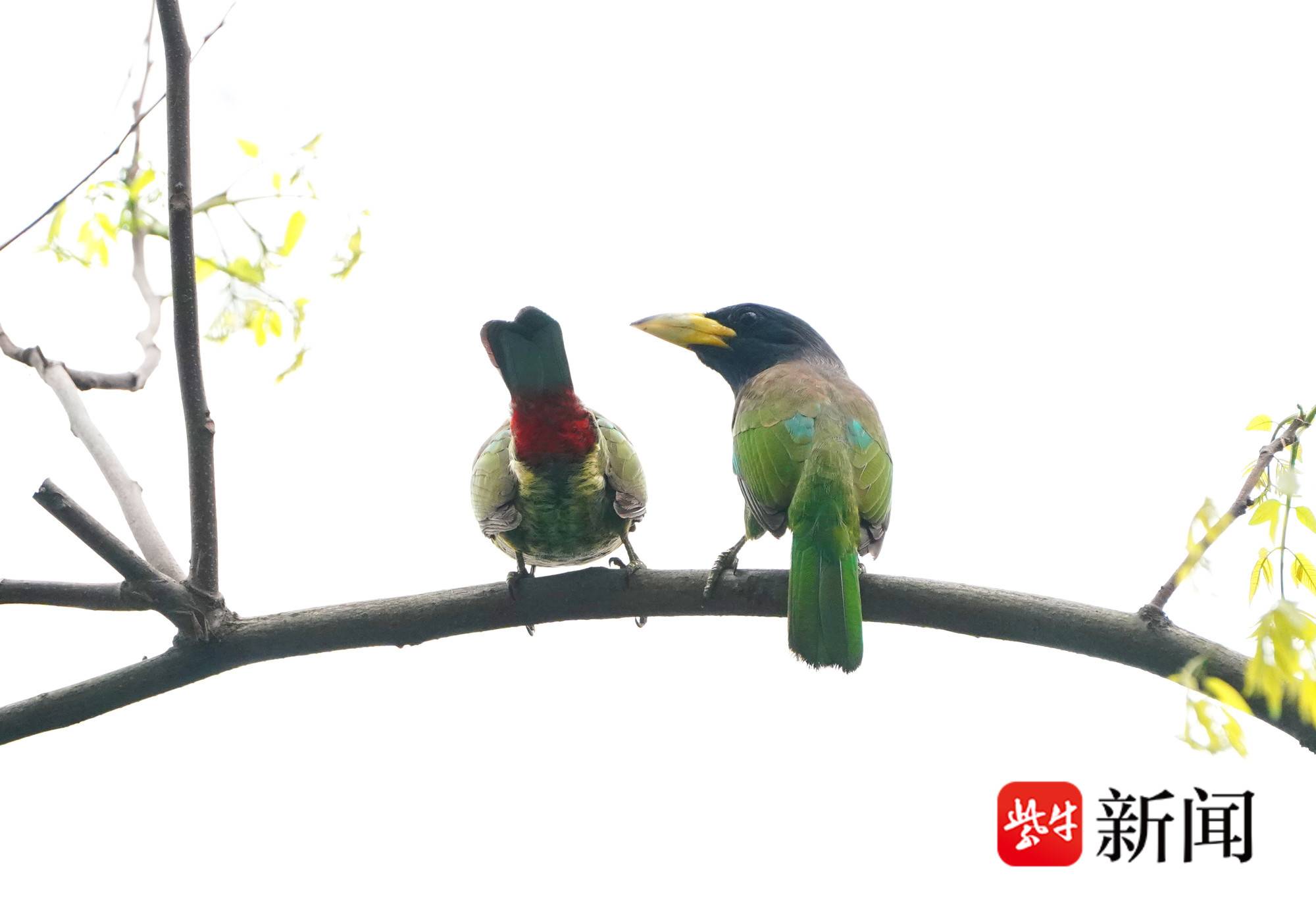 罕见!南方热带大拟啄木鸟,飞来南京辛苦育雏
