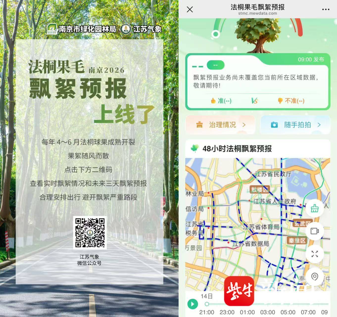 市民可通过江苏气象微信服务系统链接,查看道路实时飘絮情况及未来48小时、72小时的飘絮预测。这意味着,过敏人群或对飘絮敏感的市民,可以像查天气一样,提前规划出行路线,主动做好防护。