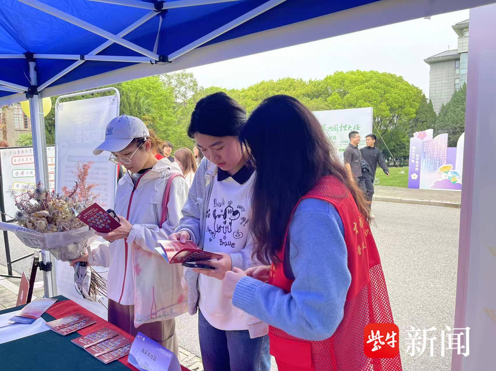 区委政法委的“政法网格员”现场发放国家安全法律手册,区发改委的“远离校园贷”展板前同样围满了学生,区司法局专门针对毕业生推出出国留学公证、就业法律风险防范咨询,贴心又实用。此外,出入境政策咨询、校园征兵宣传等摊位也人头攒动。