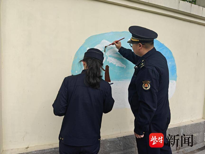南京江北新区综合行政执法部门彩绘普法扮靓街巷