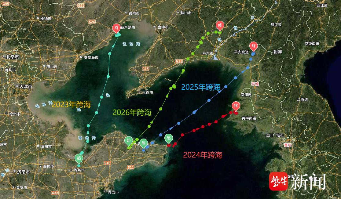 黑鸢5号连续四年跨海路线对比 图源:环球信士官网