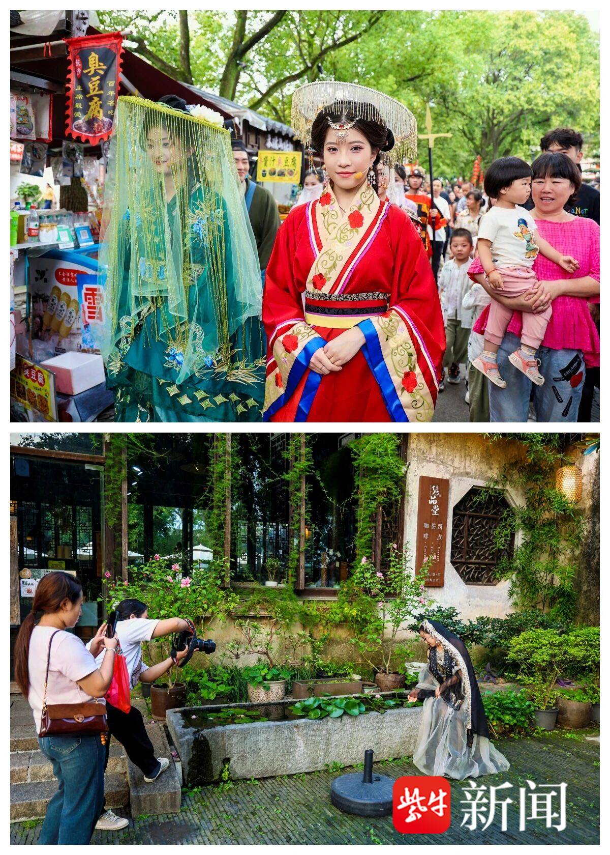 漫步在青石板铺就的古镇街巷中,游客不仅能邂逅身着吴地服饰、展现绝代风华的“西施”身影,感受当年西施在古镇生活的场景,还能变装西施等春秋人物,用相片定格美好。