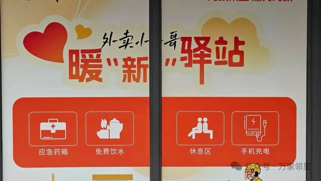 在相城区,盛北社区驿站联合周边电动车维修店,为骑手提供免费检测和优惠电池租赁;中心商贸街区与寺泾社区联建联管的驿站,不仅持续供应免费的饮用水,还配备了微波炉、急救包、充电设备及安全宣传手册,默默守护每一位奔波中的劳动者。