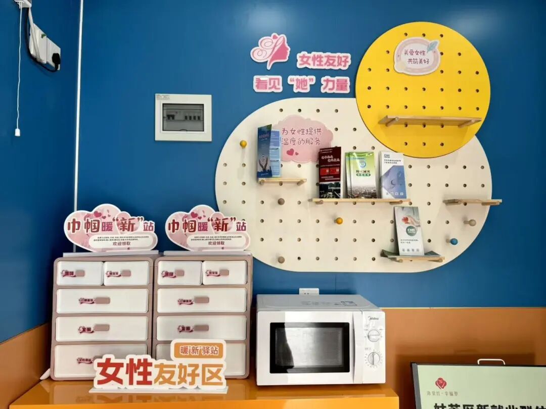 在姑苏区,金阊街道联合西城永捷打造的暖“新”驿站,一层暖“新”驿站堪称“移动能量补给站”,充电插座、免费饮用水、应急药品箱一应俱全,同时贴心增设女性用品专区,精准破解女性骑手户外奔波的“难言之隐”;而一旁的专属停车棚配备防雨设施与优惠充电服务,更是解决了外卖车辆“停车难、充电贵”的痛点。