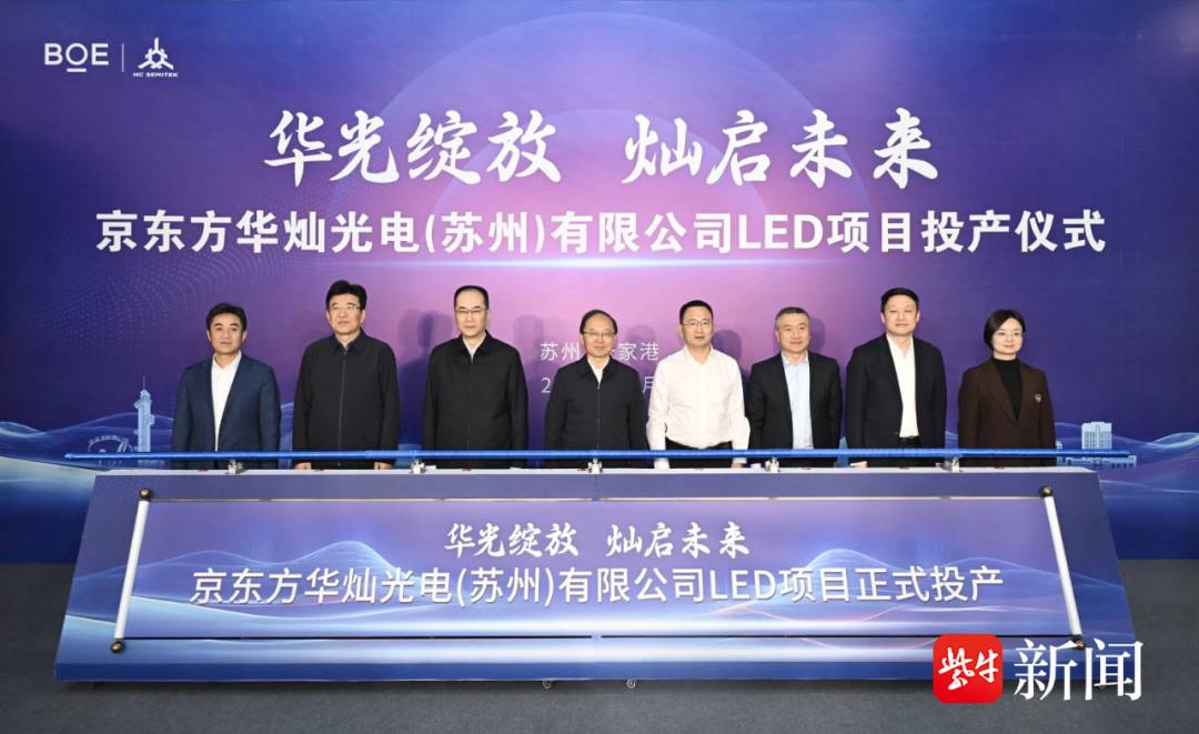 11月27日上午,总投资20亿元的京东方华灿光电(苏州)有限公司LED项目投产仪式在张家港经开区举行。苏州市副市长查颖冬,张家港市委书记韩卫,京东方科技集团副董事长、首席运营官王锡平,京东方科技集团副总裁、MLED业务首席执行官刘毅,京东方华灿光电股份有限公司董事长张兆洪等参加活动。