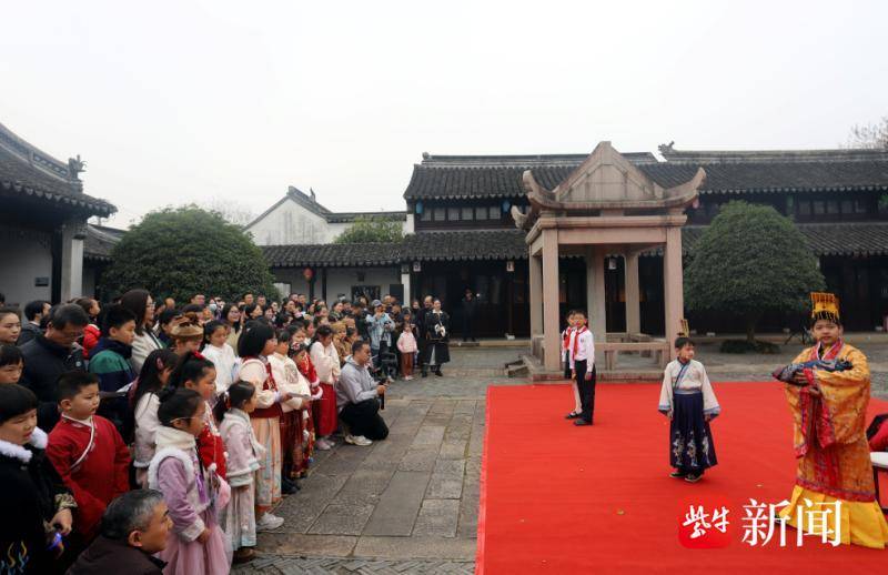 12月20日下午,位于苏州阊门内下塘的泰伯庙前,一场原创沉浸式儿童剧《泰伯奔吴》正在这里上演,17名孩童身着古朴服饰,将“泰伯奔吴”的历史传奇娓娓道来,年龄最小的演员仅8岁。